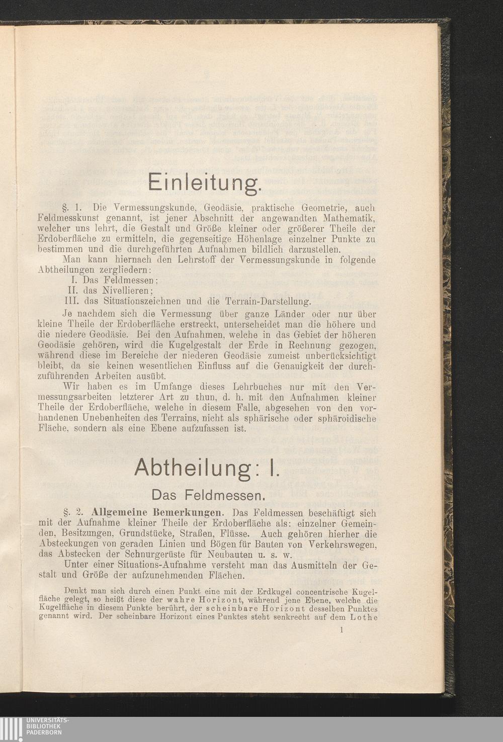 Abtheilung: I. Das Feldmessen.
