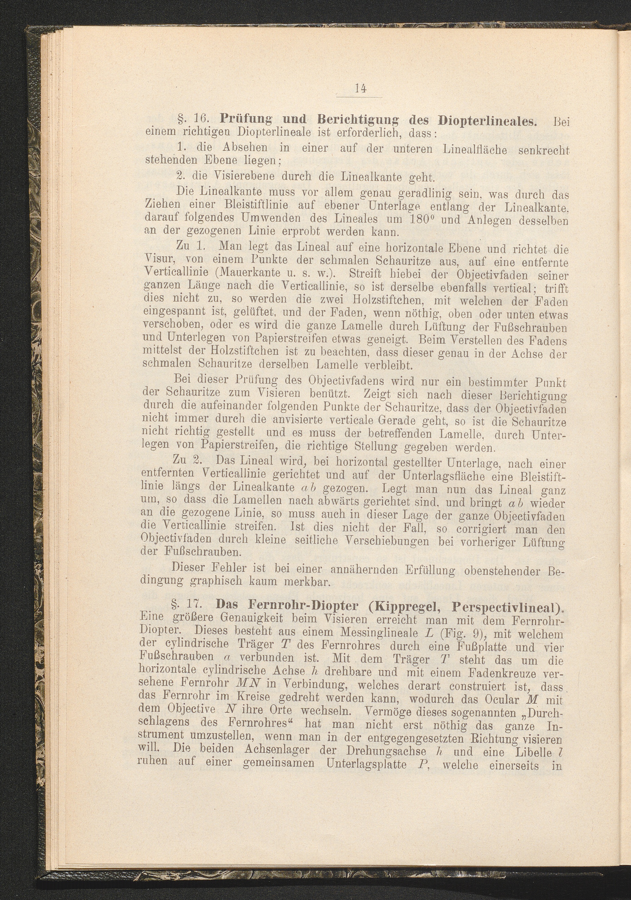 §. 17-18. Das Fernrohrdiopter (Kippregel, Perspectivlineal).