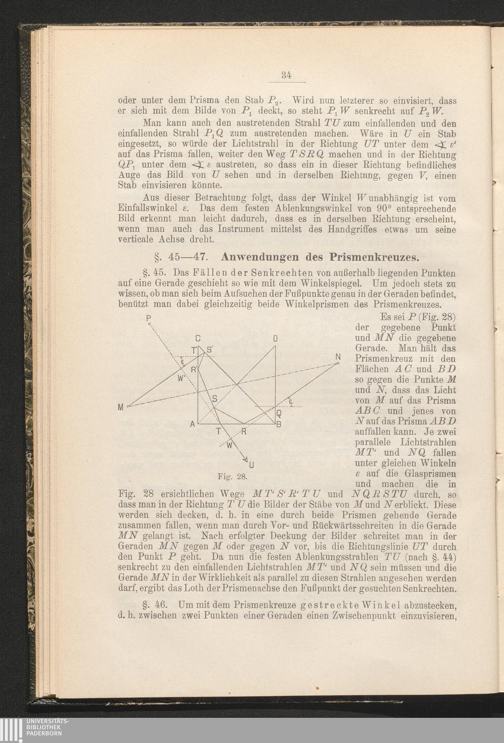 §. 45-48. Anwendungen und Prüfung des Prismenkreuzes.