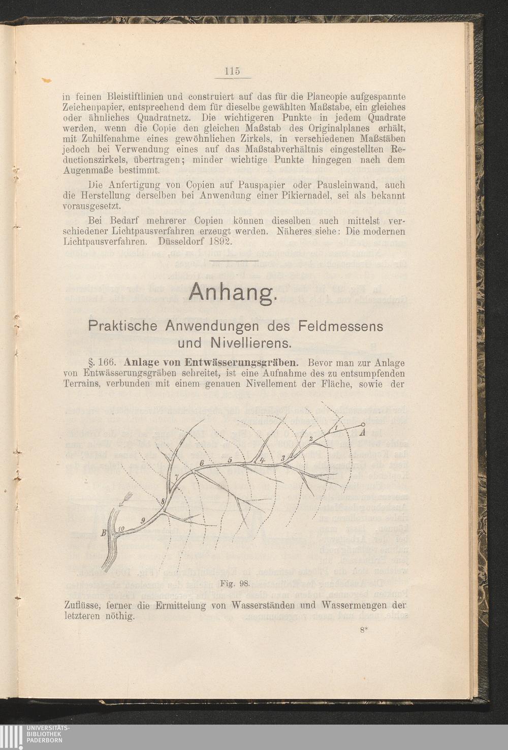 Anhang. Praktische Anwendungen des Feldmessens und Nivellierens.