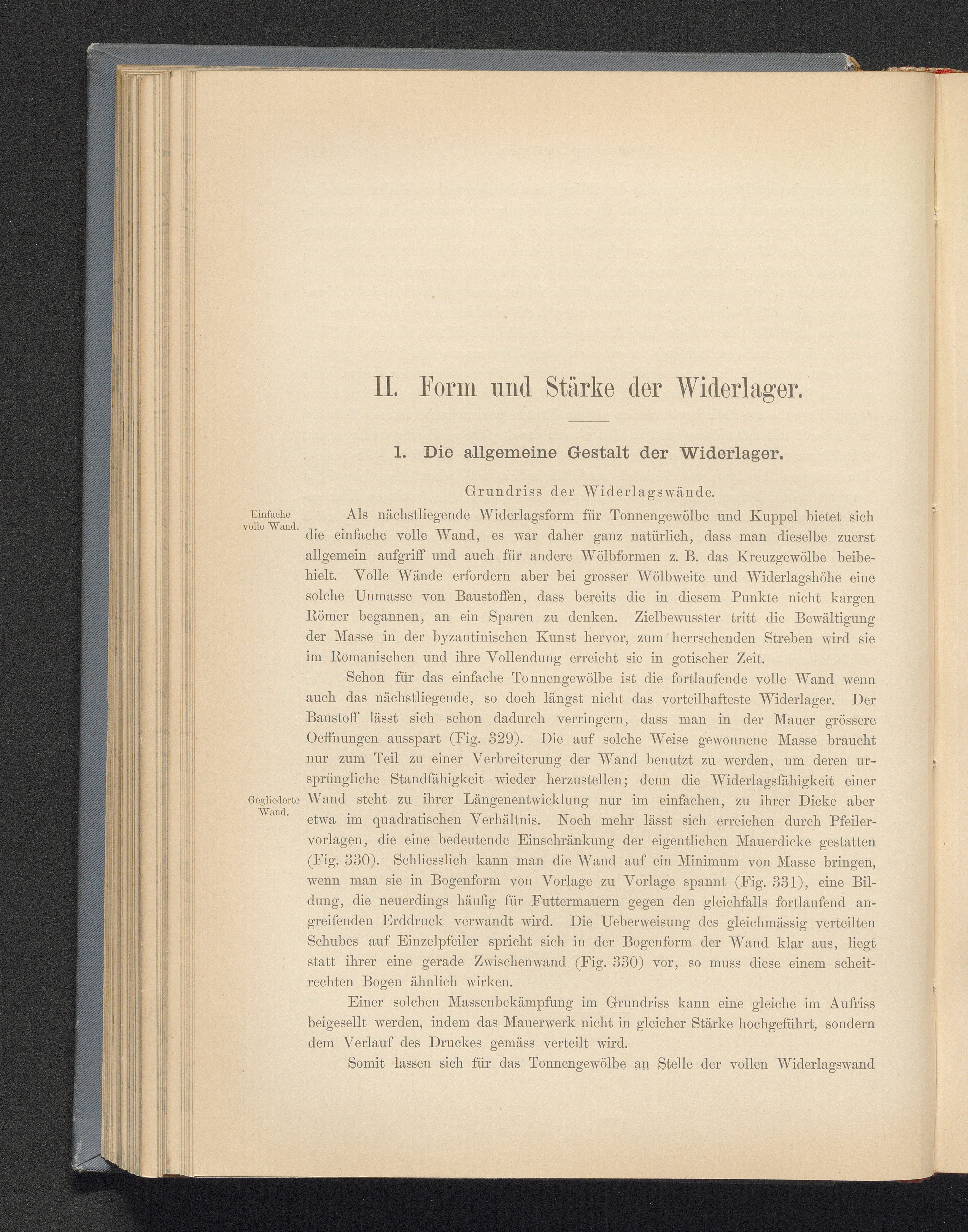 II. Form und Stärke der Widerlager.