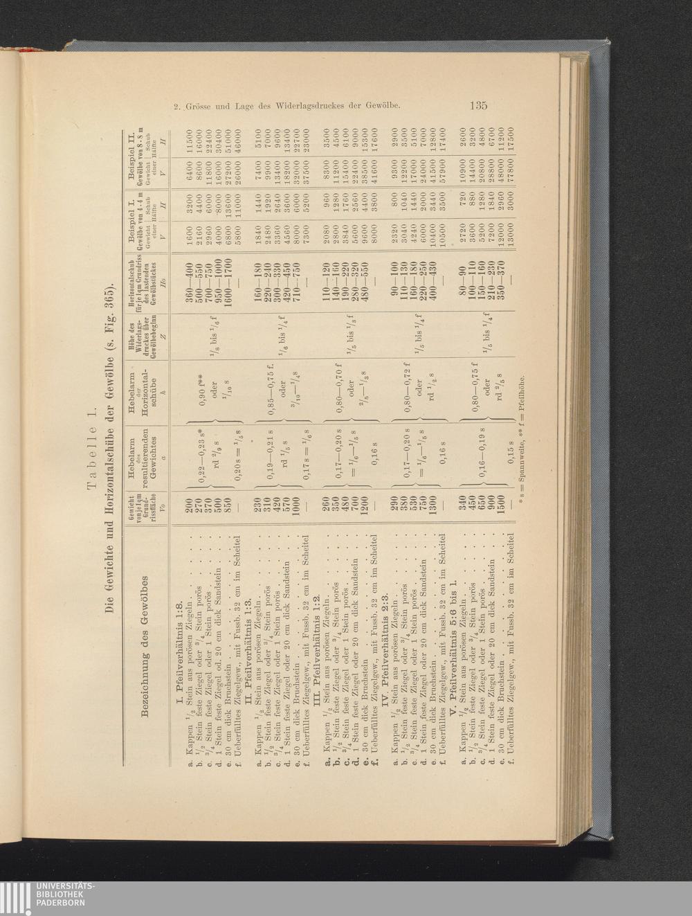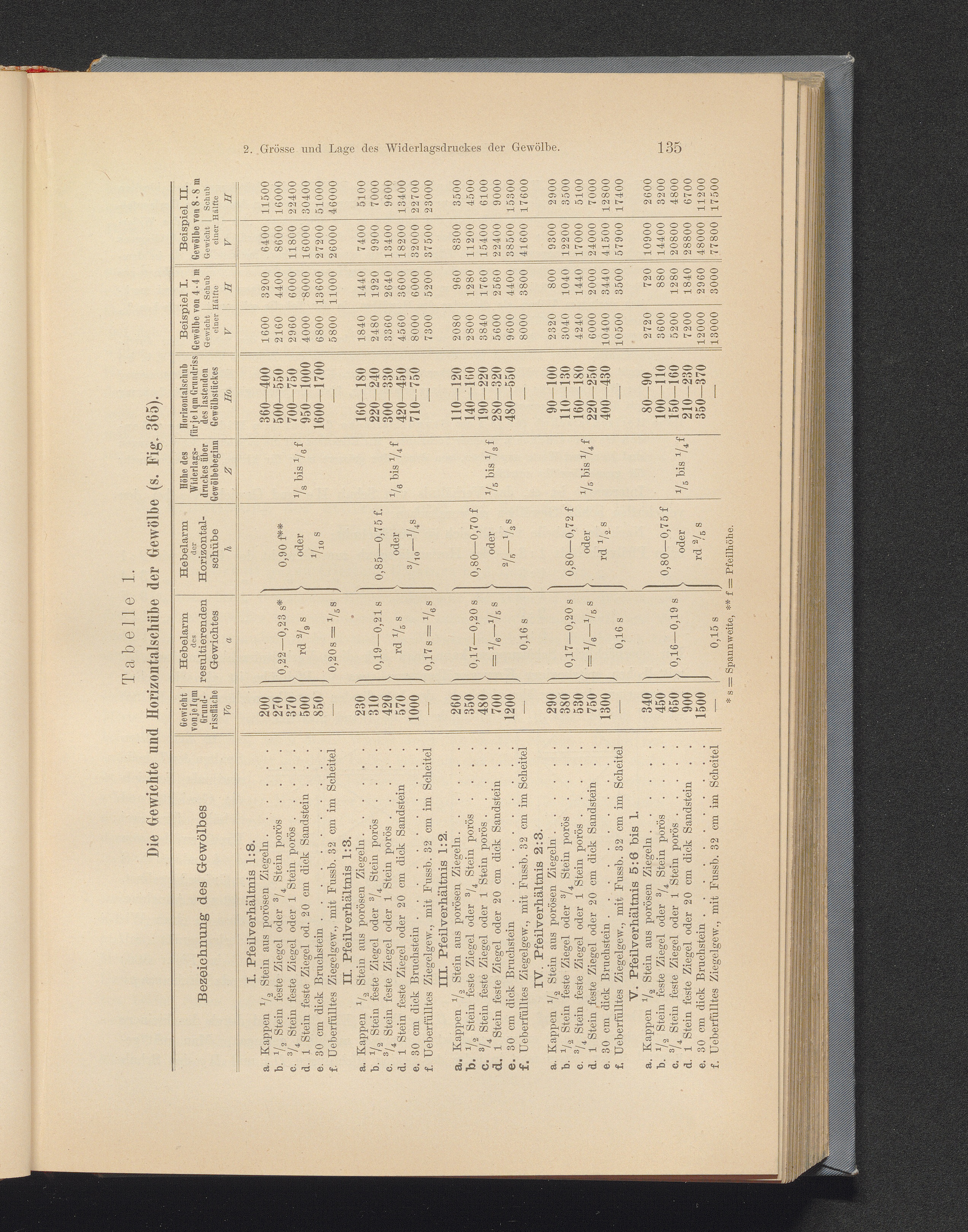 Gewichte und Horizontalschübe der Gewölbe, Tabelle