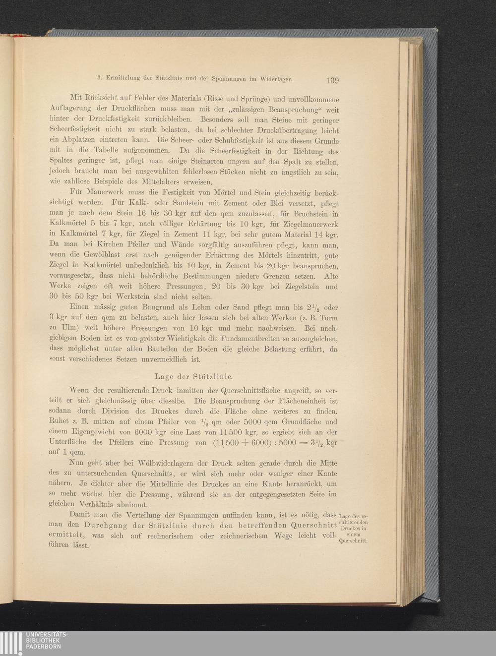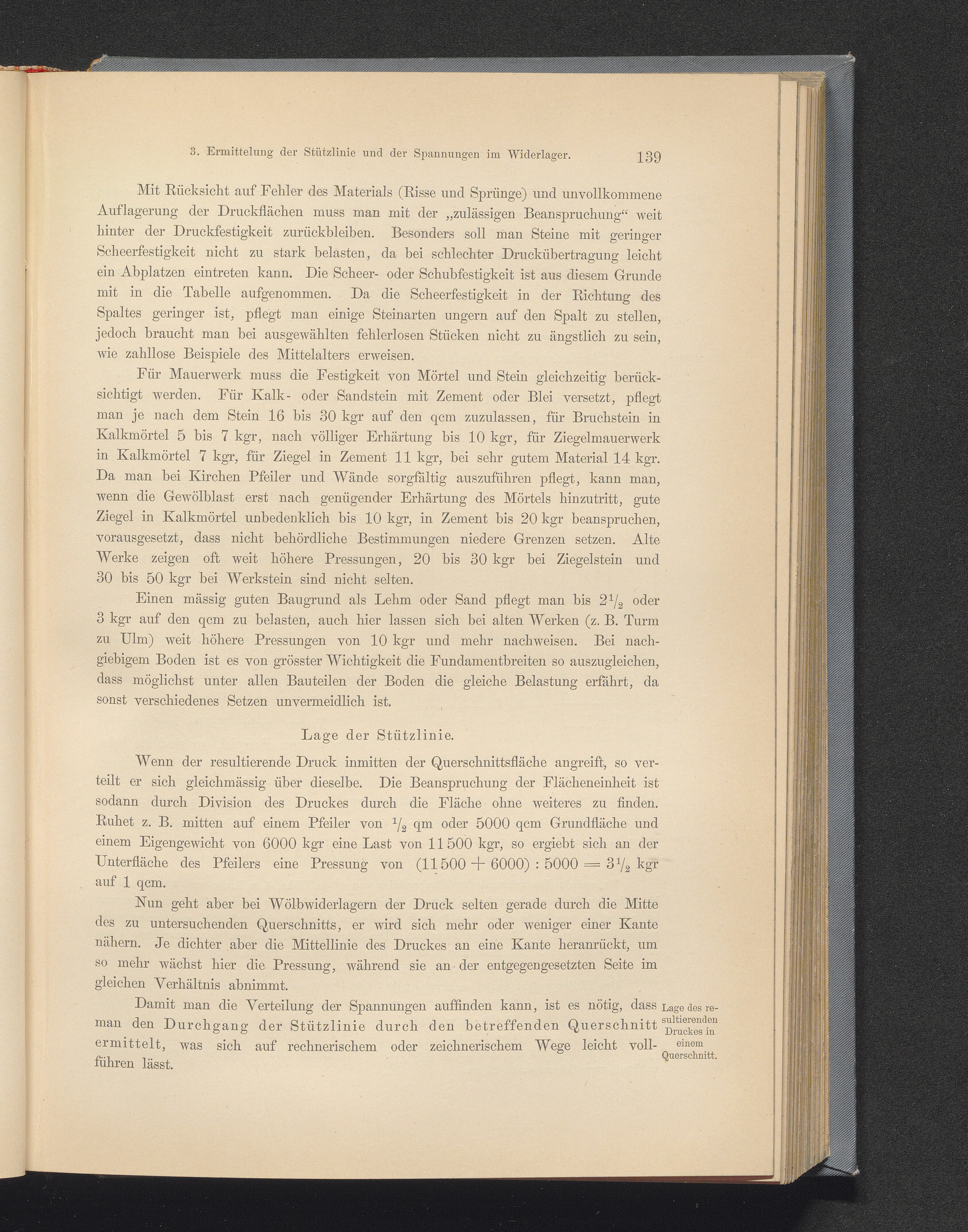 3. Ermittelung der Stützlinie und der Spannungen im Widerlager