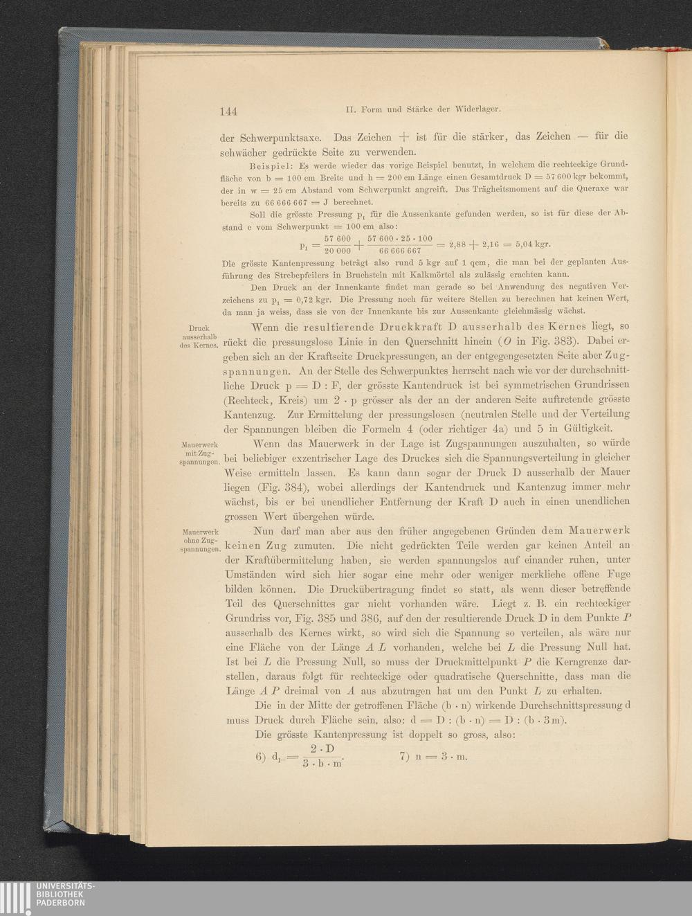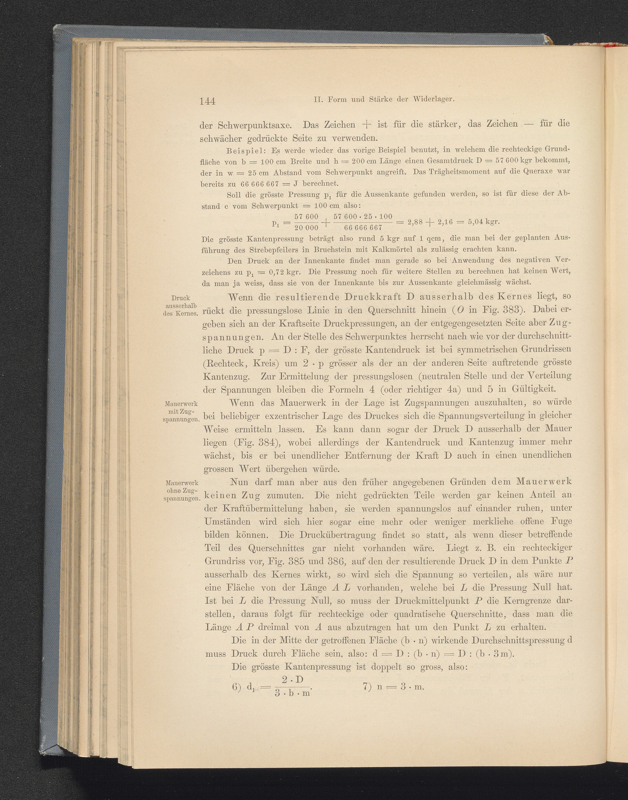 II. Form und Stärke der Widerlager.