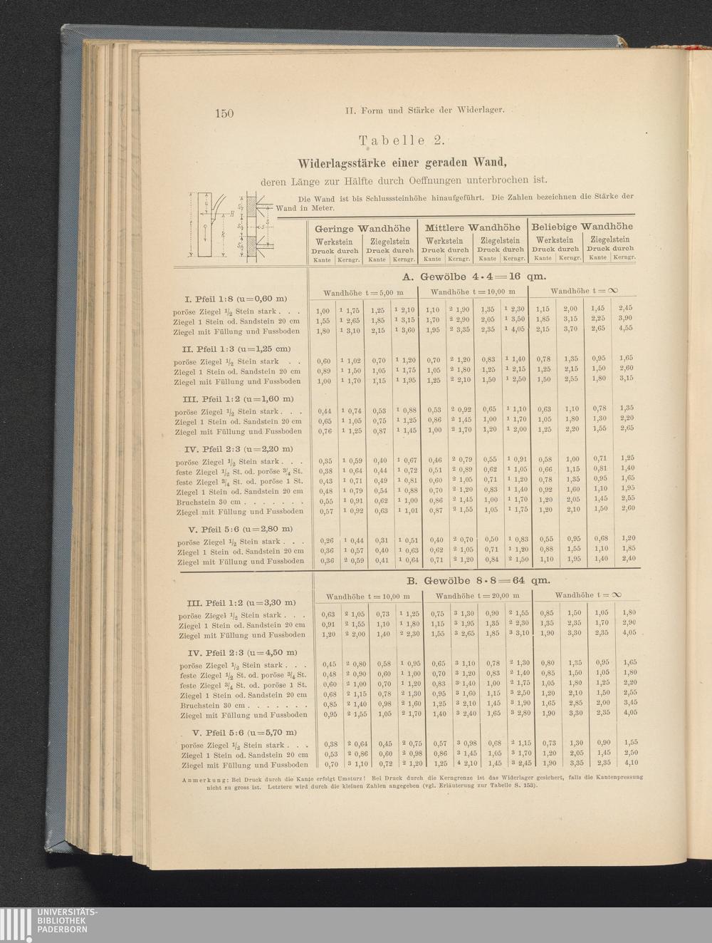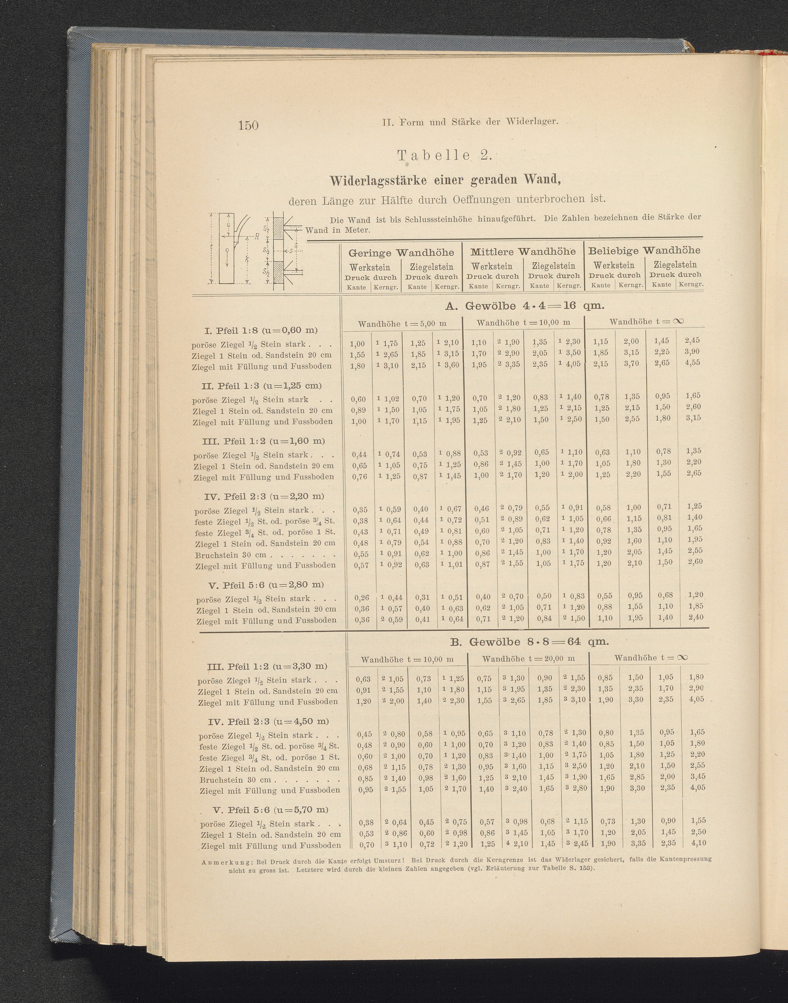Tabellen über Widerlagsstärke der Wände und Strebepfeiler
