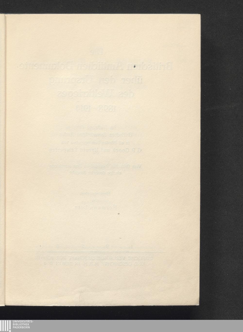 Die britischen amtlichen Dokumente über den Ursprung des Weltkrieges 1898 - 1914