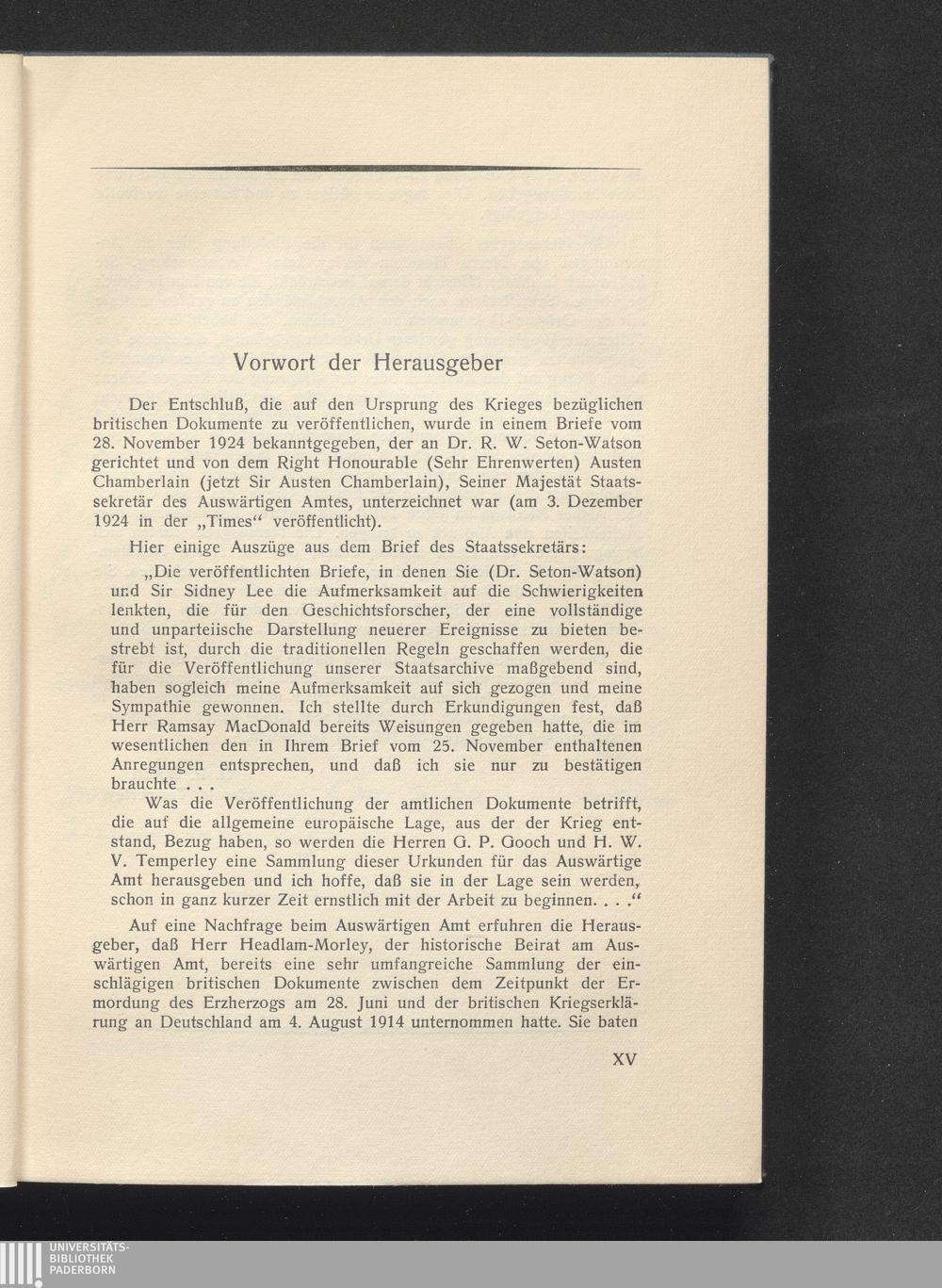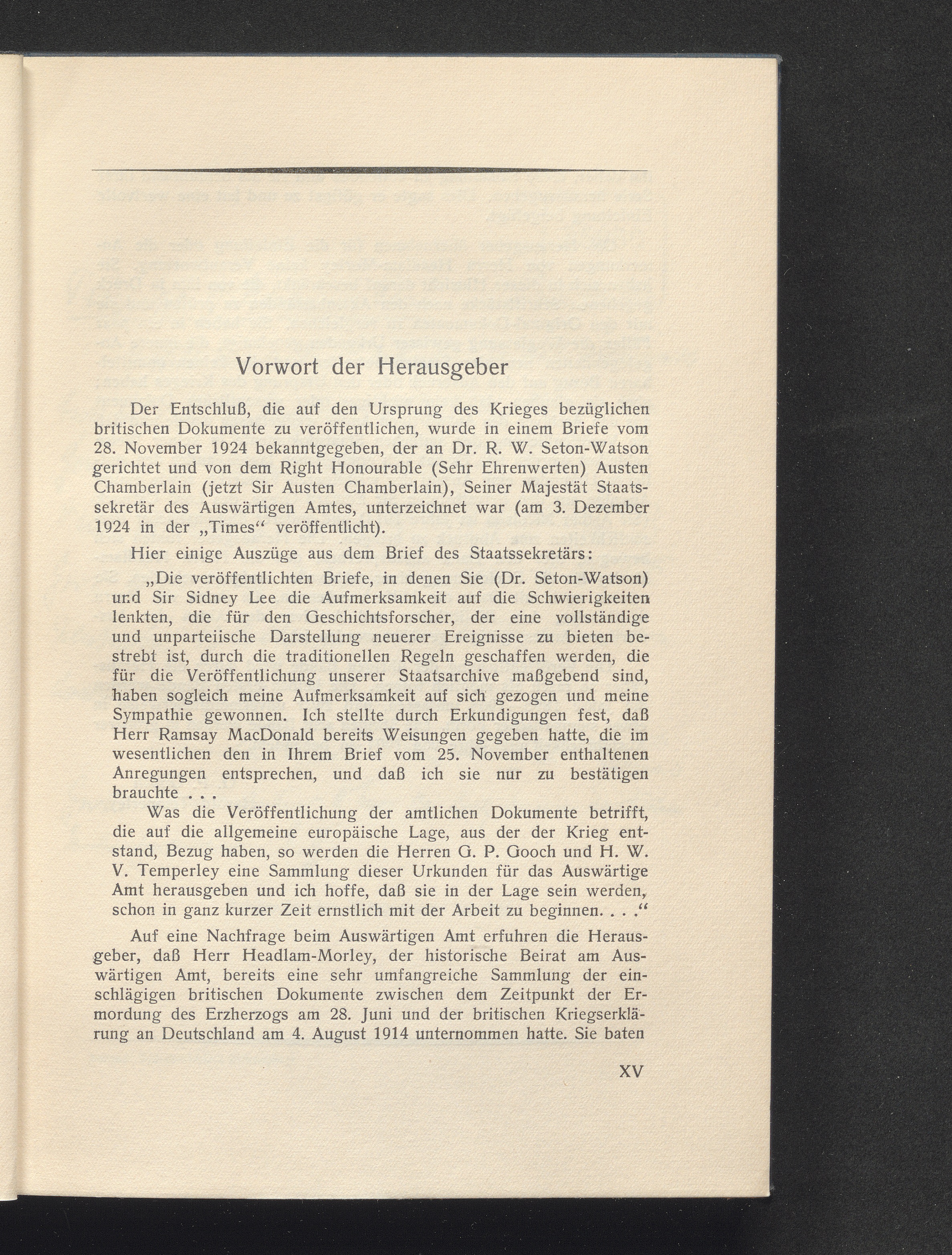 [Bd. 11]. Der Ausbruch des Krieges: Dokumente des Britischen Auswärtigen Amtes, 28. Juni bis 4. August 1914, Hälfte 1 (1926) Ges. und zsgest. sowie mit einer Einl. und Noten vers. von J. W. Headlam-Morley