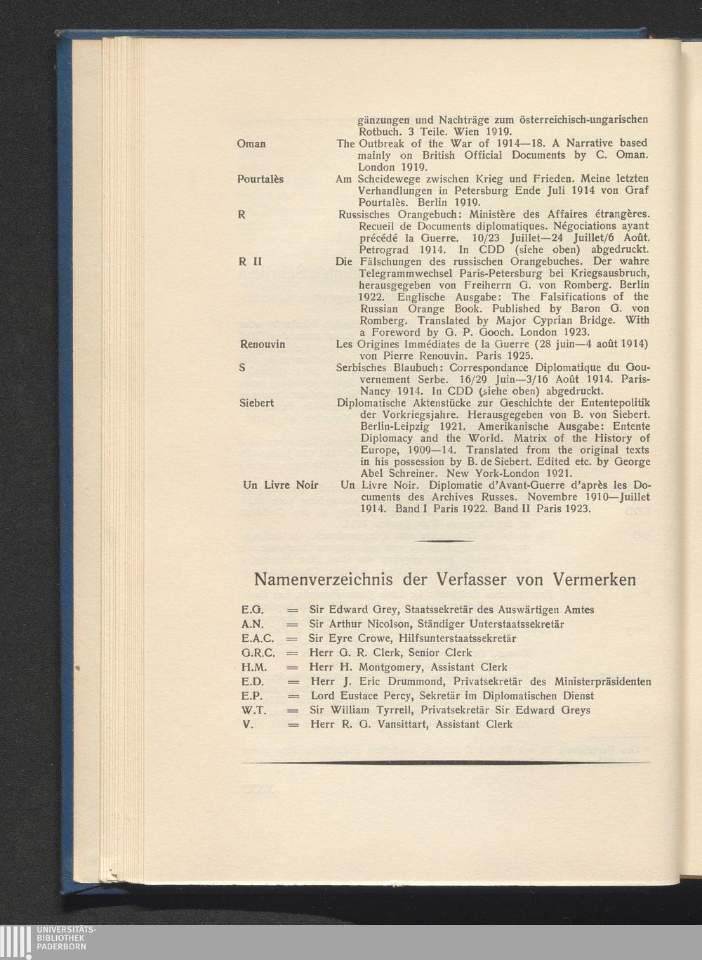 [Bd. 11]. Der Ausbruch des Krieges: Dokumente des Britischen Auswärtigen Amtes, 28. Juni bis 4. August 1914, Hälfte 1 (1926) Ges. und zsgest. sowie mit einer Einl. und Noten vers. von J. W. Headlam-Morley