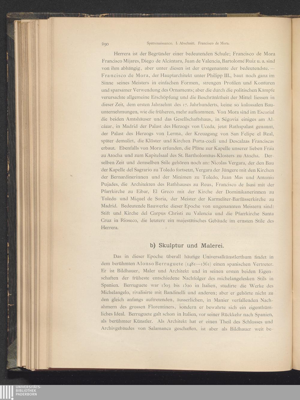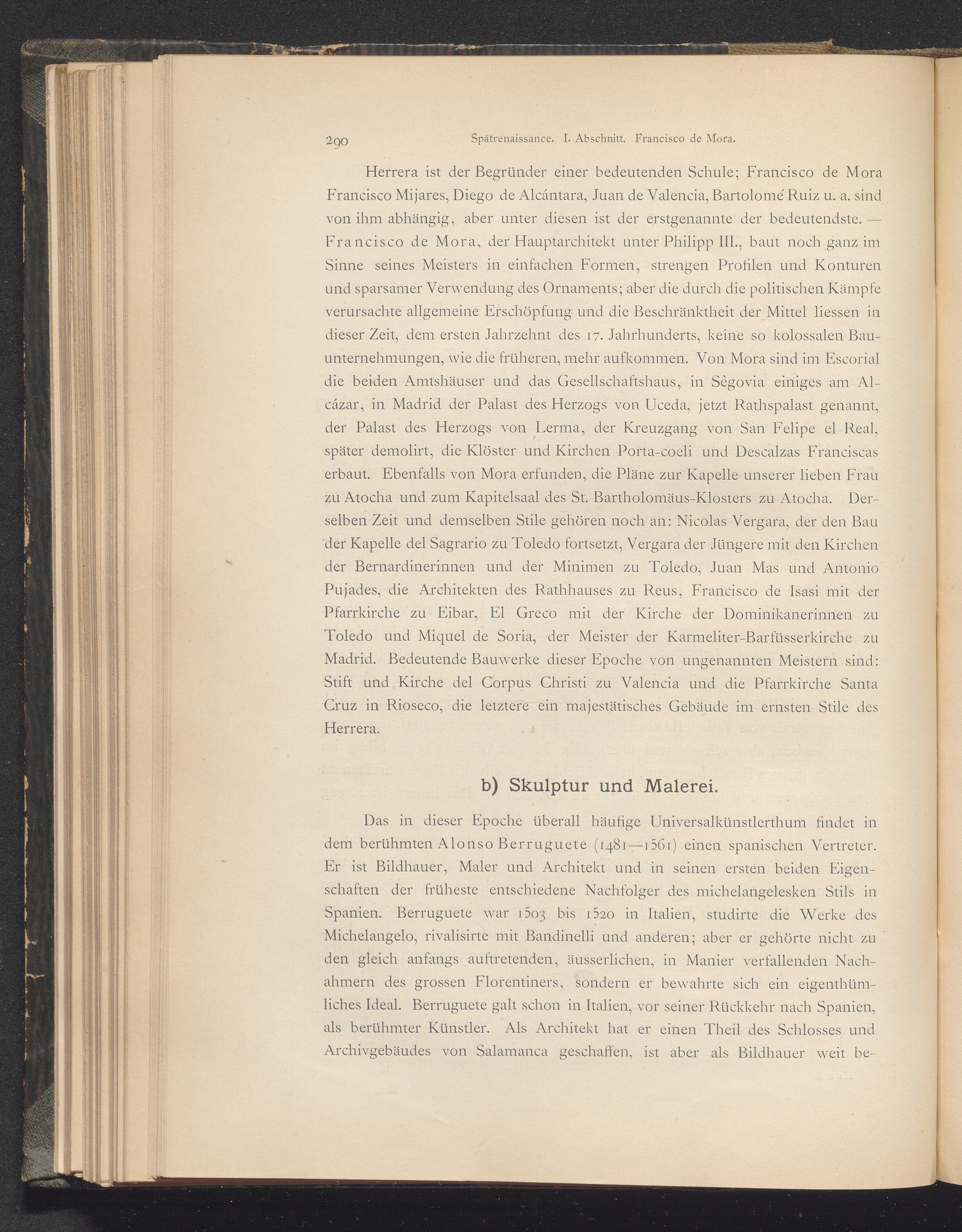 b) Skulptur und Malerei. Alonso Berruguete, der Schüler des Michelangelo. Die Malerschulen[...]