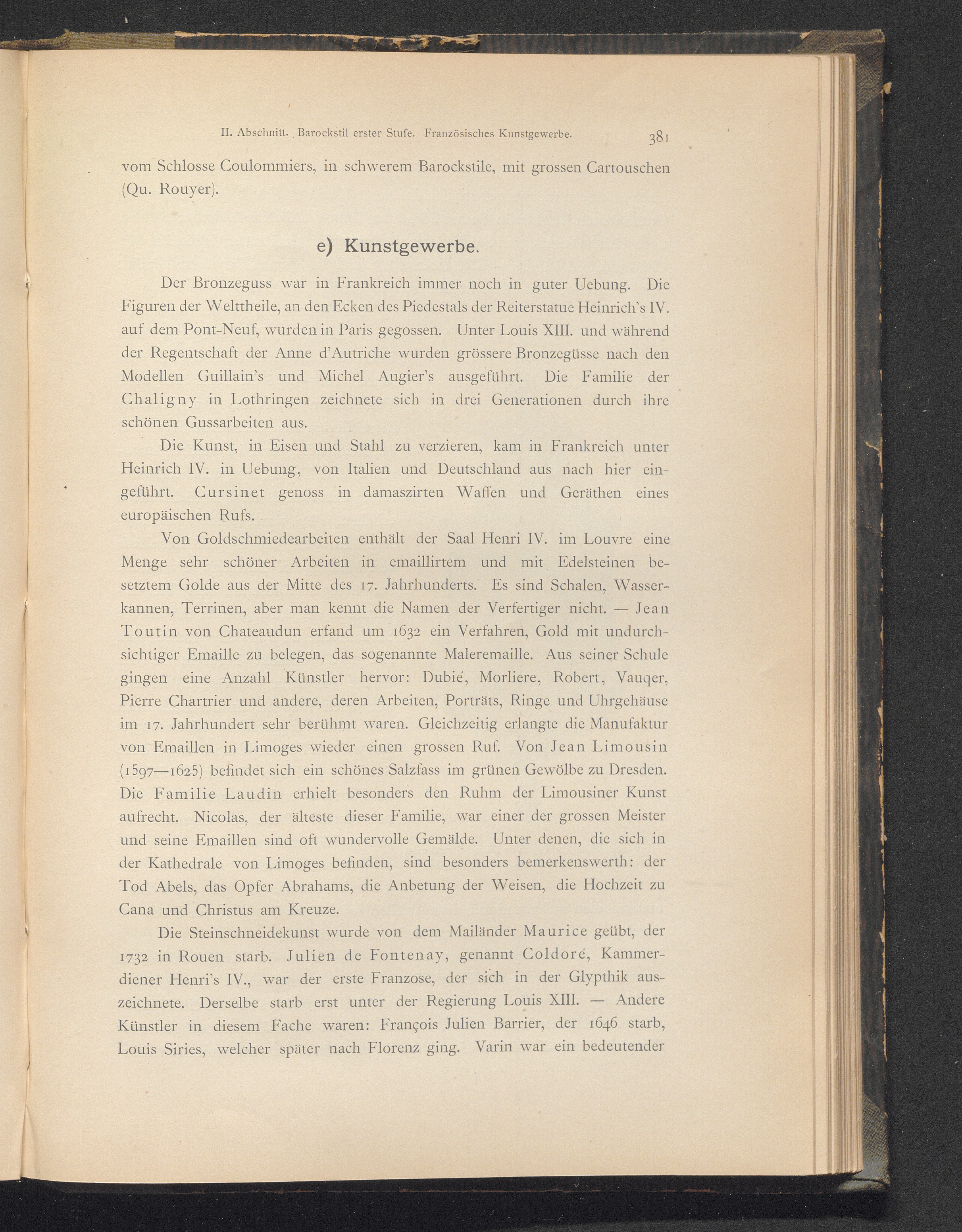 e) Kunstgewerbe. Der Bronzeguss. -Die Goldschmiede- und Steinschneiderarbeiten. -Die[...]