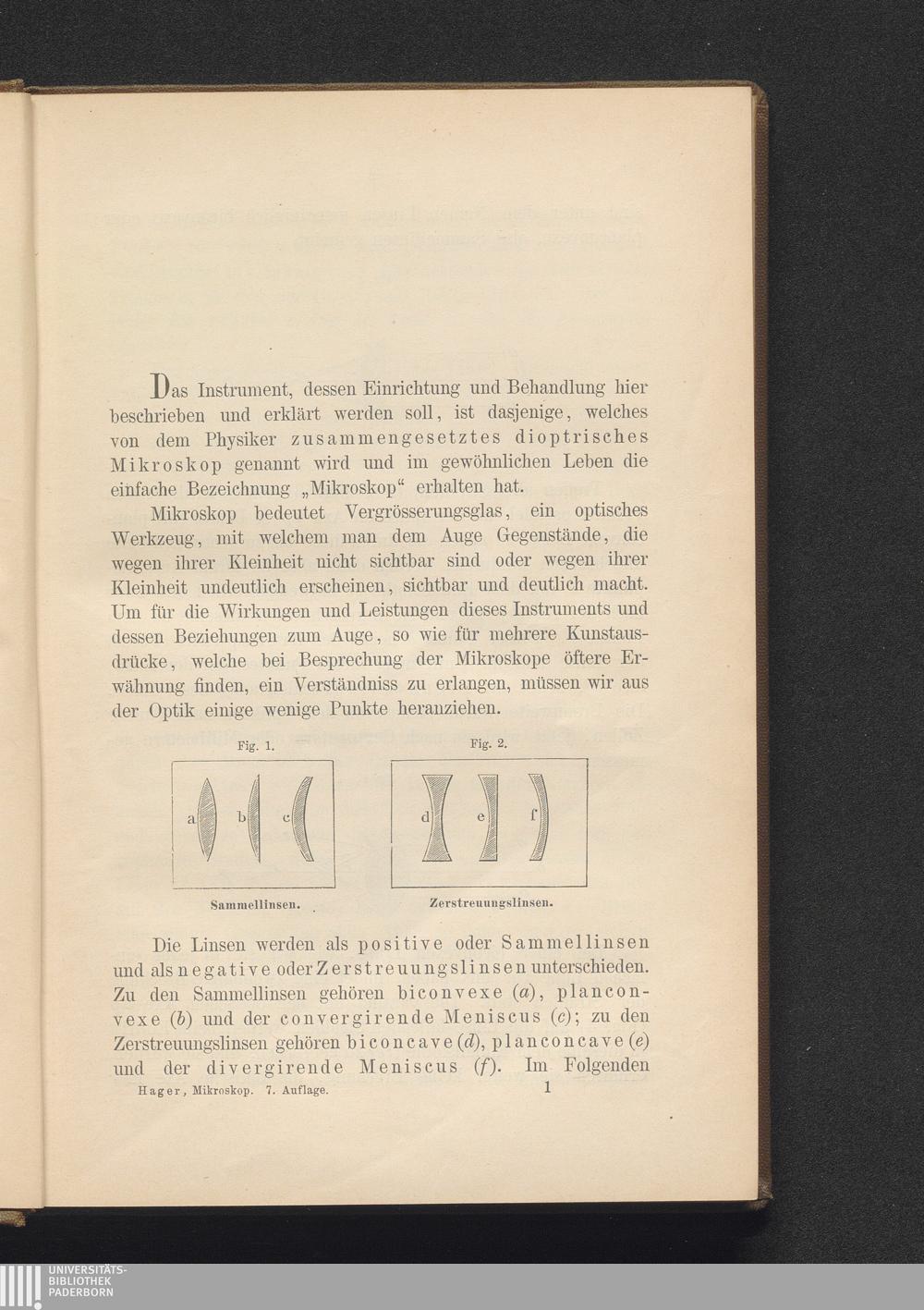 Das Mikroskop und seine Anwendung : ein Leitfaden bei mikroskopischen Untersuchungen für Apotheker, Aerzte, Medicinalbeamte, Kaufleute, Techniker, Schullehrer, Fleischbeschauer etc. / von Hermann Hager