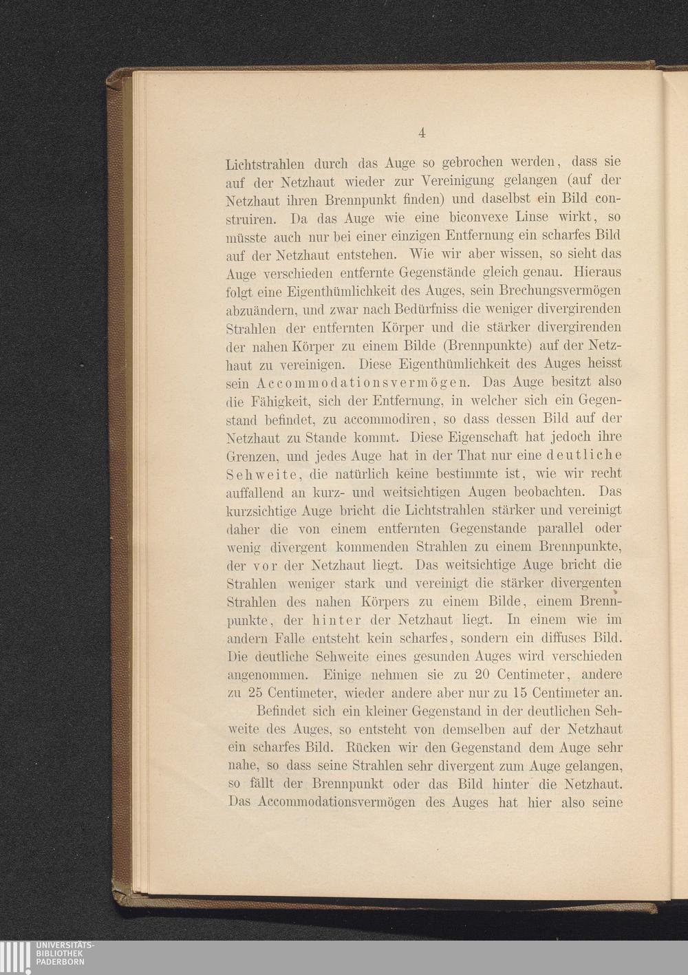 Accommodationsvermögen des Auges. Deutliche Sehweite.