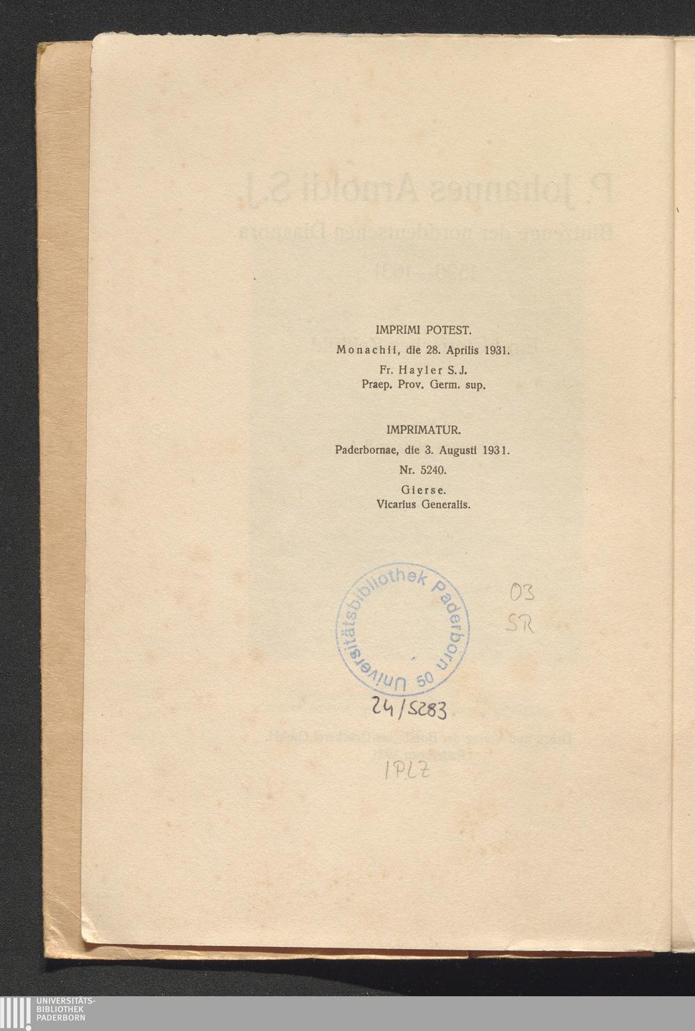 P. Johannes Arnoldi S.J.: Blutzeuge der norddeutschen Diaspora : 1596-1631 : ein historisches Zeitbild / von Johannes Metzler S.J.