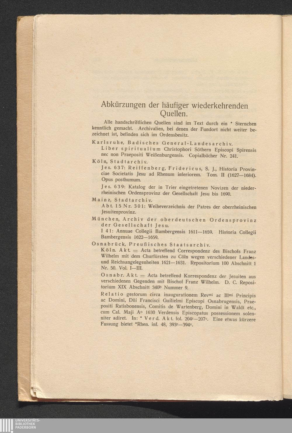 Abkürzungen der häufig wiederkehrenden Quellen