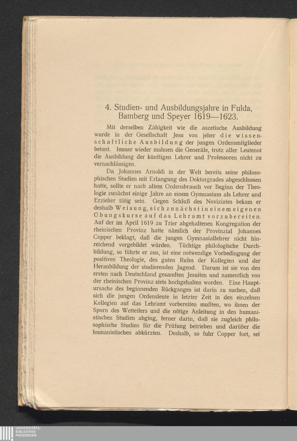 4. Studien- und Ausbildungsjahre in Fulda, Bamberg und Speyer 1619 - 1623