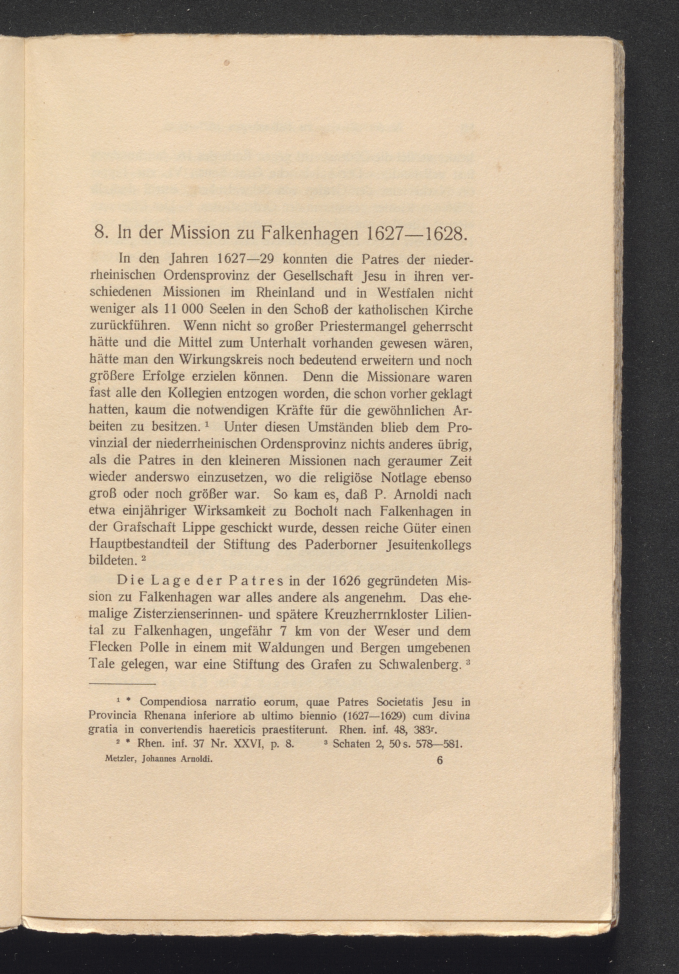P. Johannes Arnoldi S.J.: Blutzeuge der norddeutschen Diaspora : 1596-1631 : ein historisches Zeitbild / von Johannes Metzler S.J.