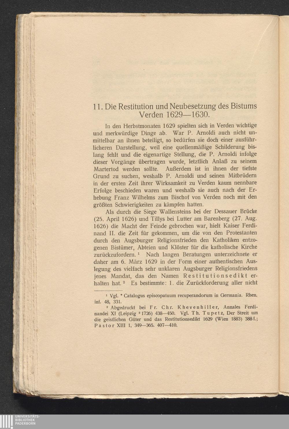 11. Die Restitution und Neubesetzung des Bistums Verden 1629 - 1630