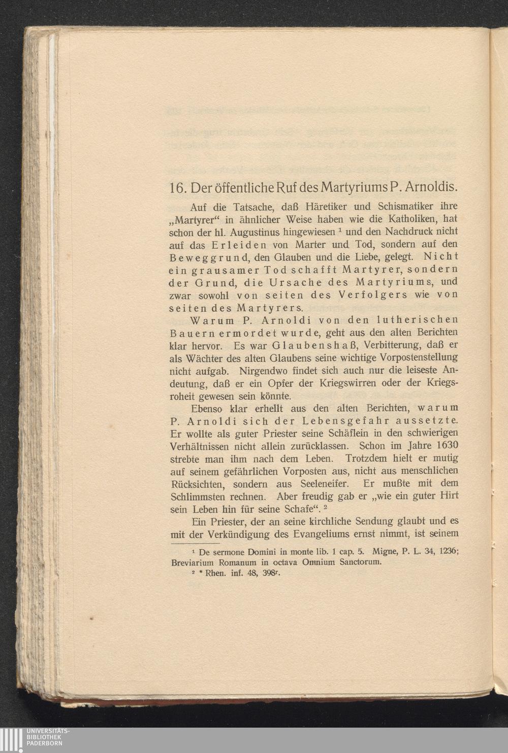 16. Der öffentliche Ruf des Martyriums P. Arnoldis