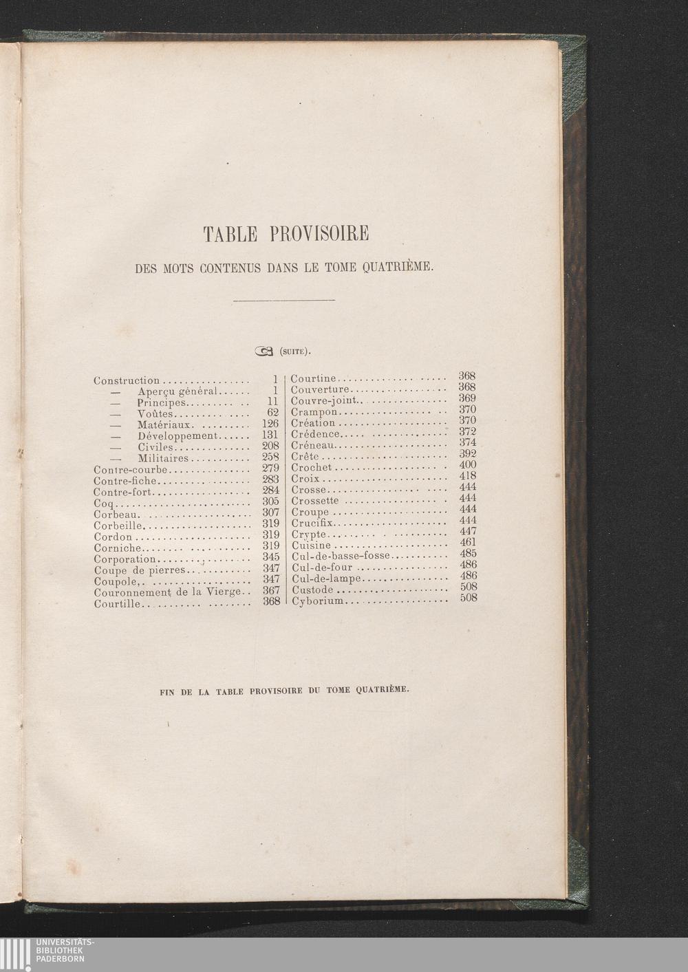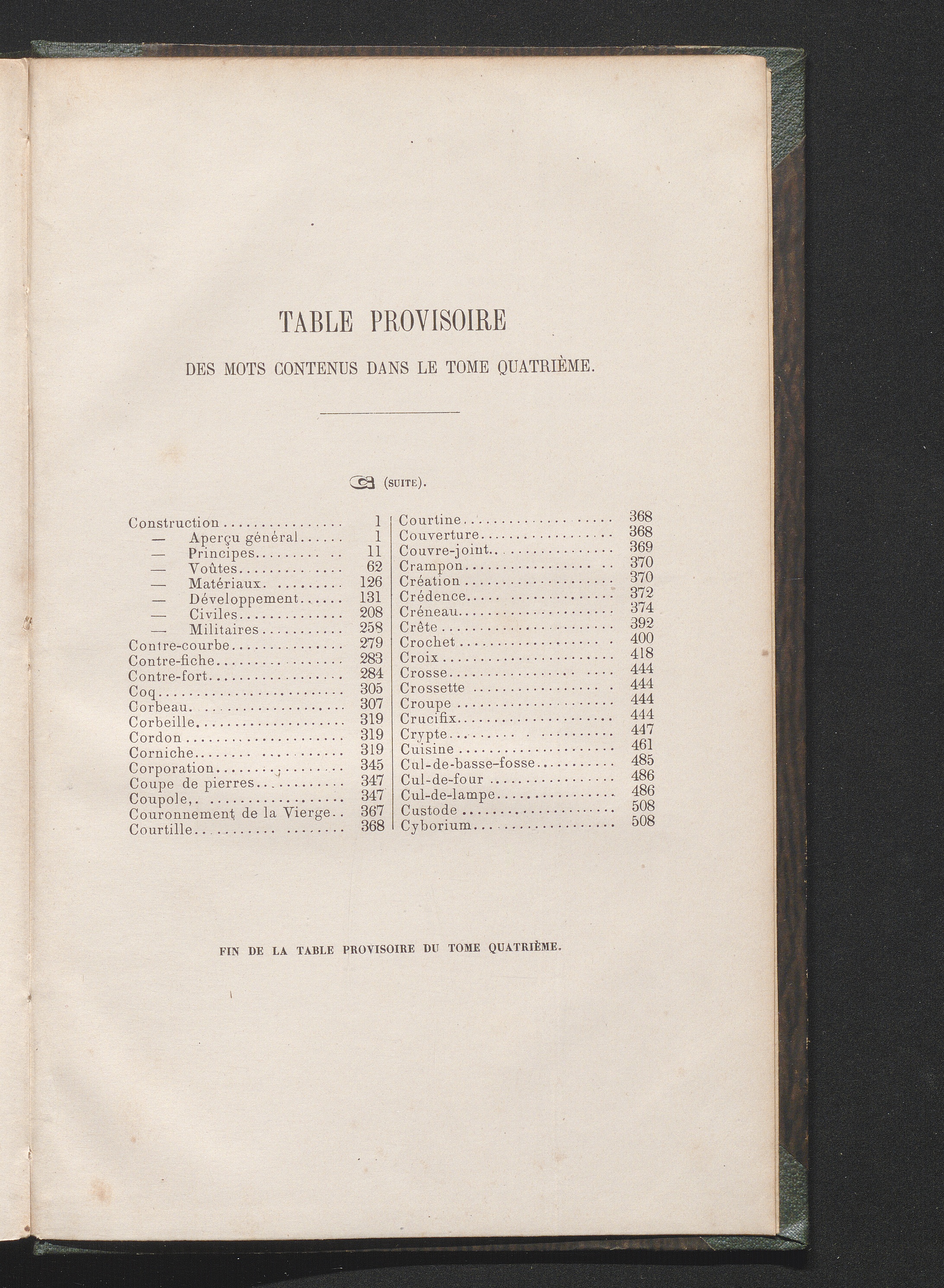 Table Provisoire Des Mots Contenus Dans Le Tome Quatrième.