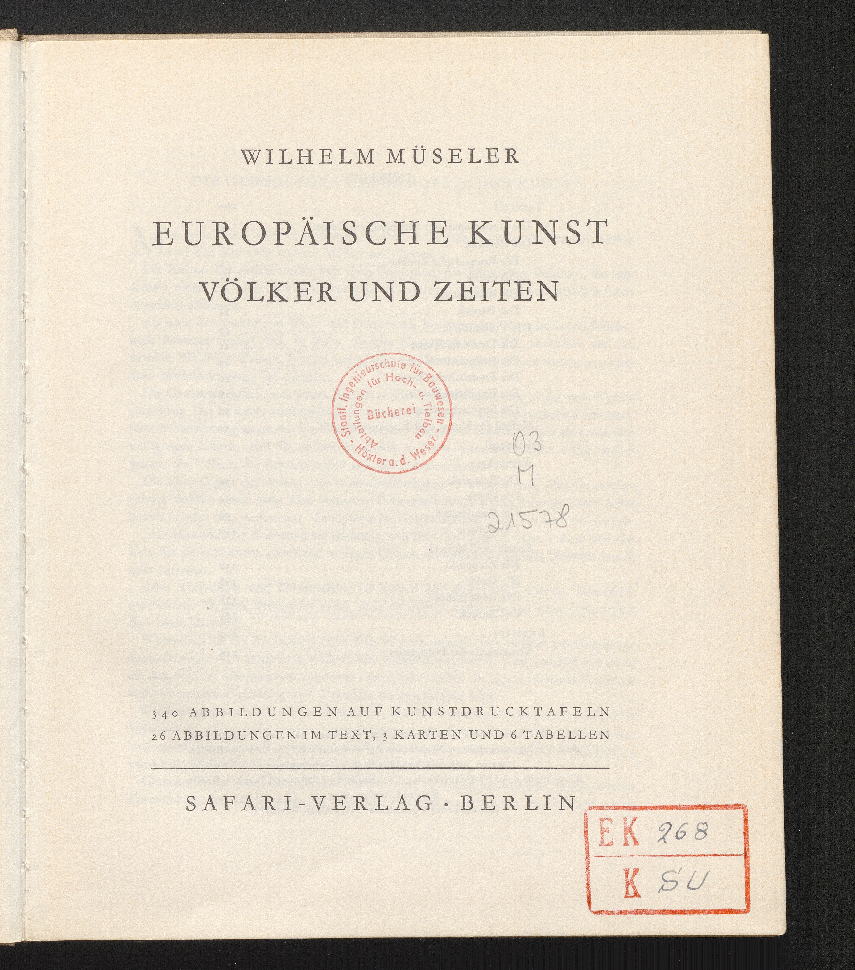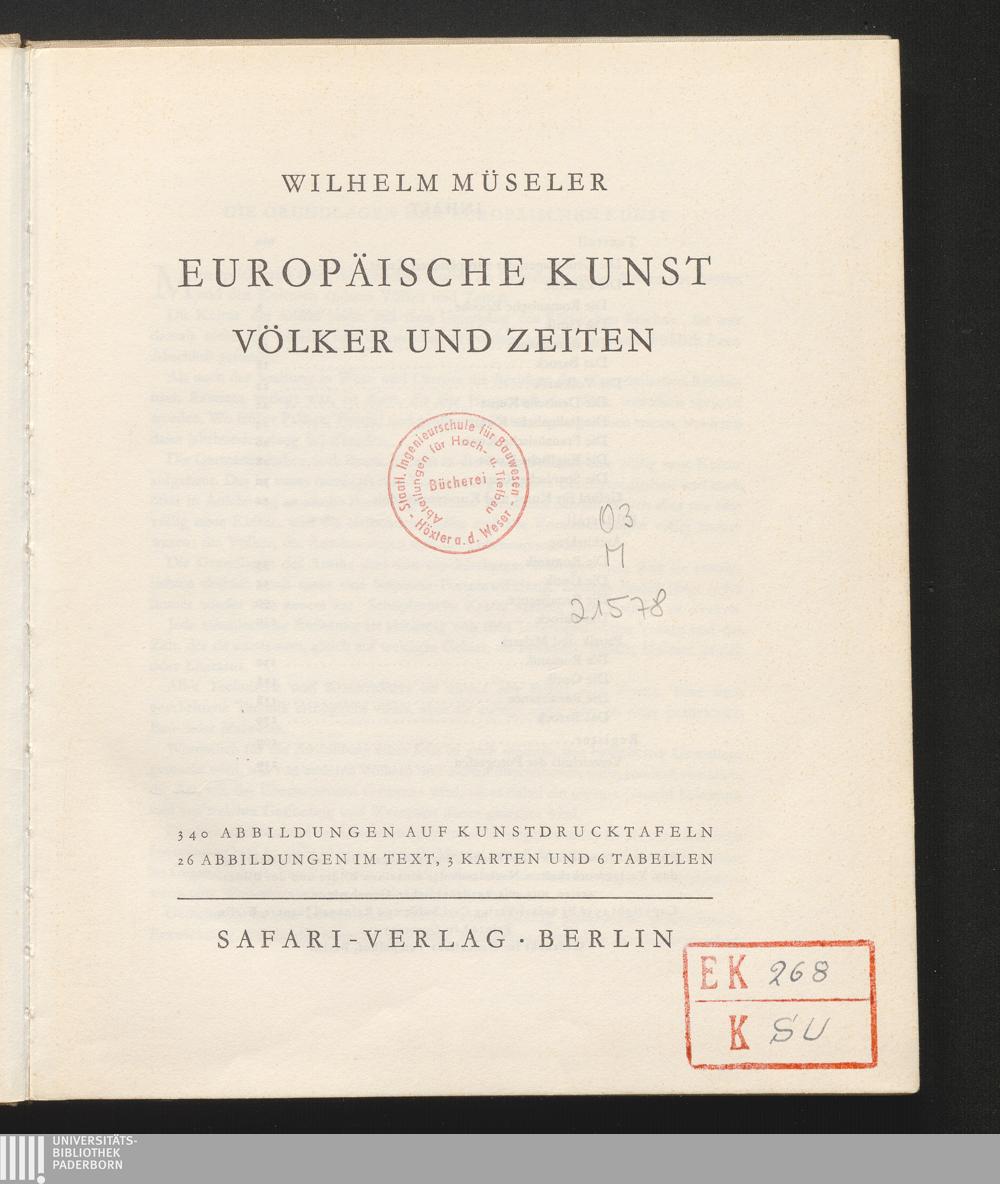 Europäische Kunst : Völker und Zeiten ; 6 Tab. / Wilhelm Müseler