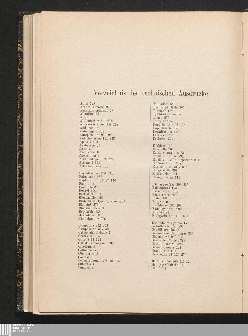 Verzeichnis der technischen Ausdrücke.