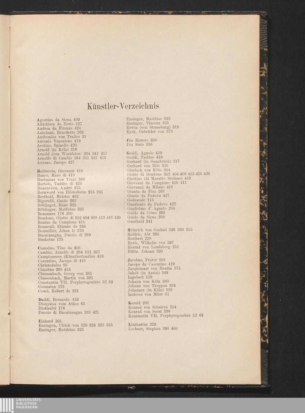 Künstler-Verzeichnis.