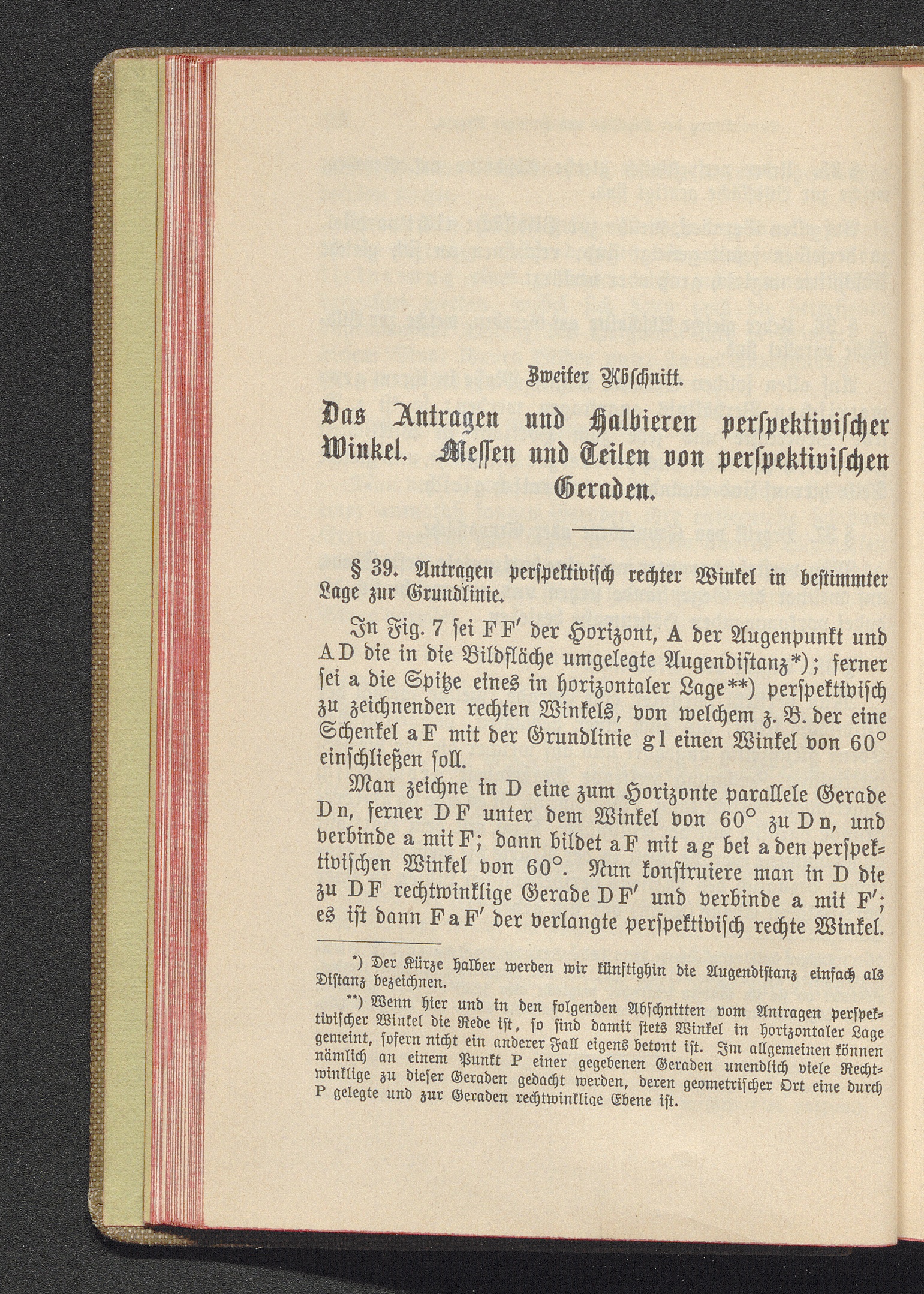 Zweiter Abschnitt. Das Antragen und halbieren perspektivischer Winkel. Messen und Teilen von perspektivischen Geraden.