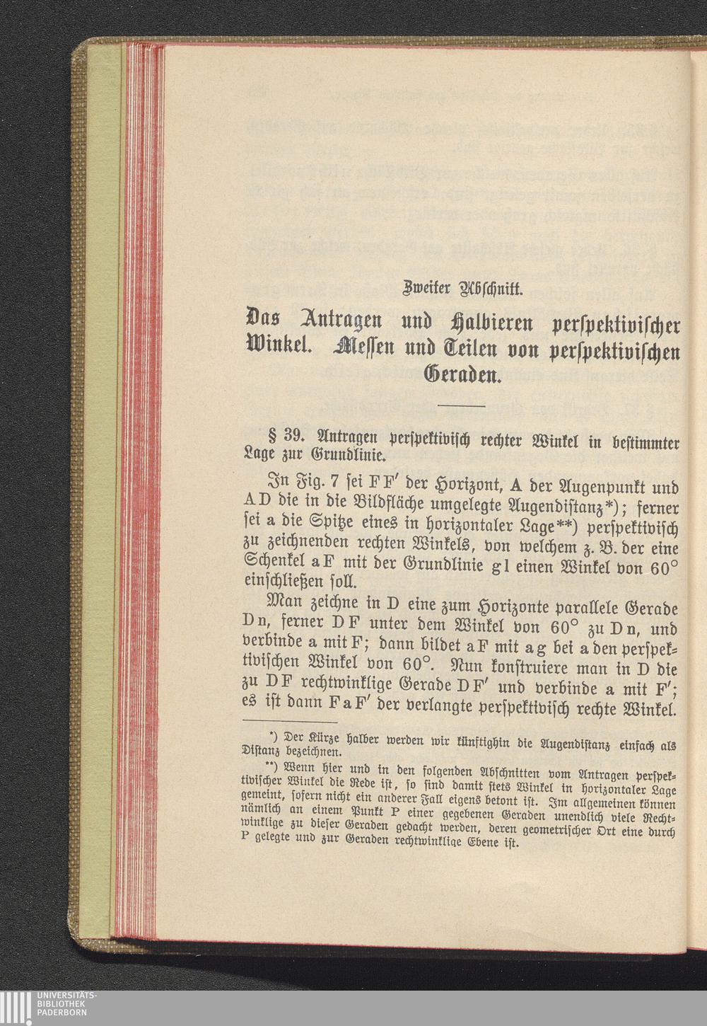 Zweiter Abschnitt. Das Antragen und halbieren perspektivischer Winkel. Messen und[...]