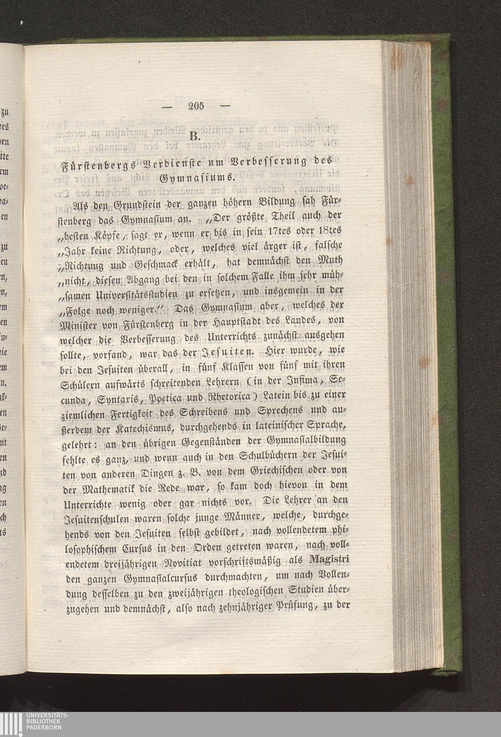 V. Fürstenbergs Verdienste um die Verbesserung der Lehranstalten.
