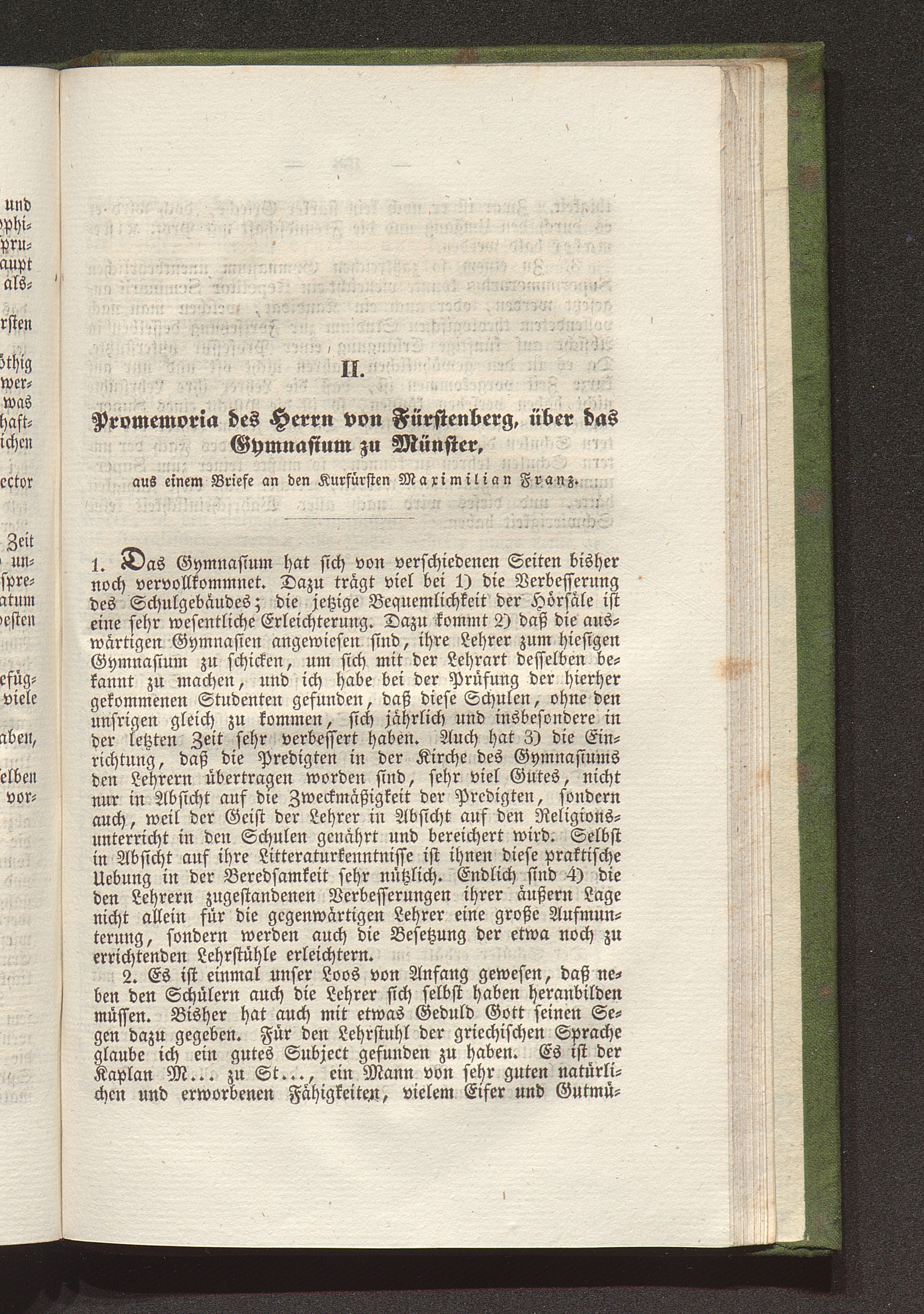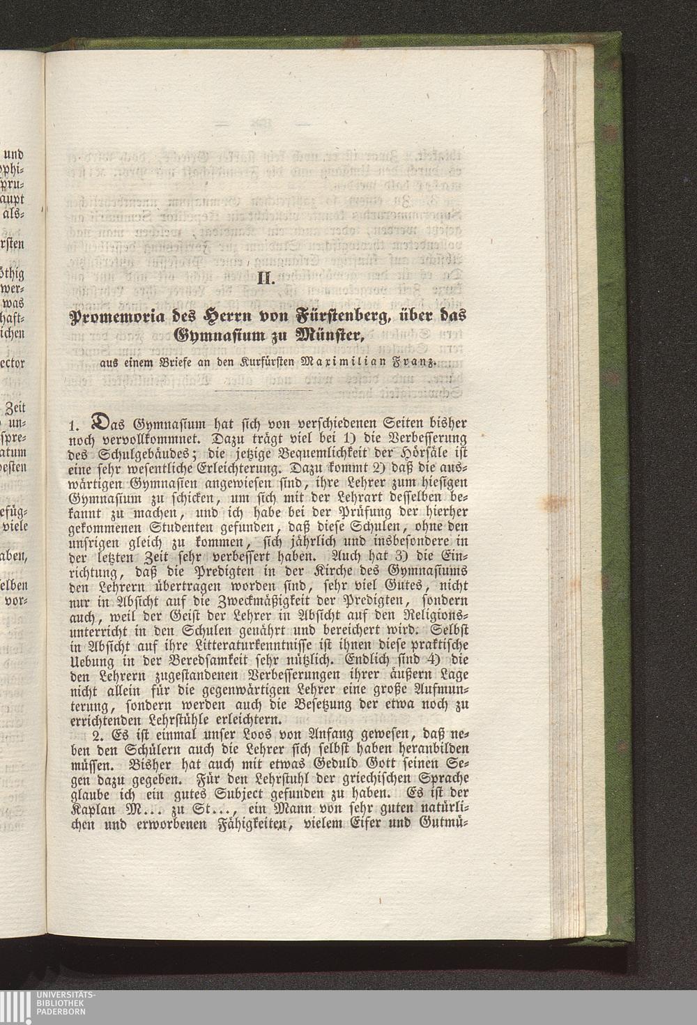 II. Promemoria des Herrn von Fürstenberg über das Gymnasium zu Münster.