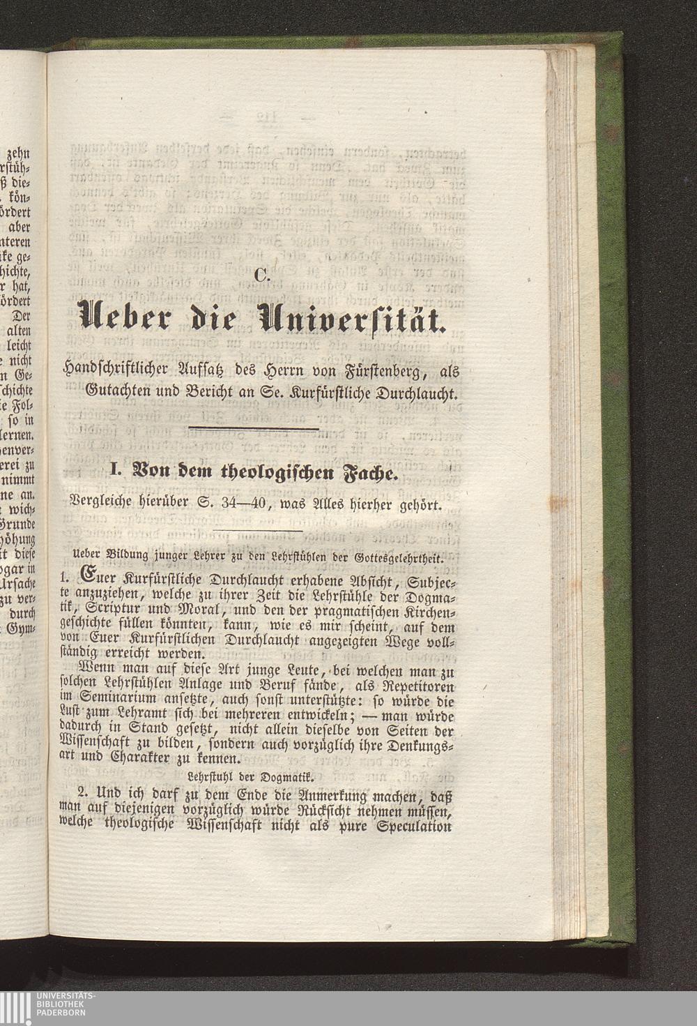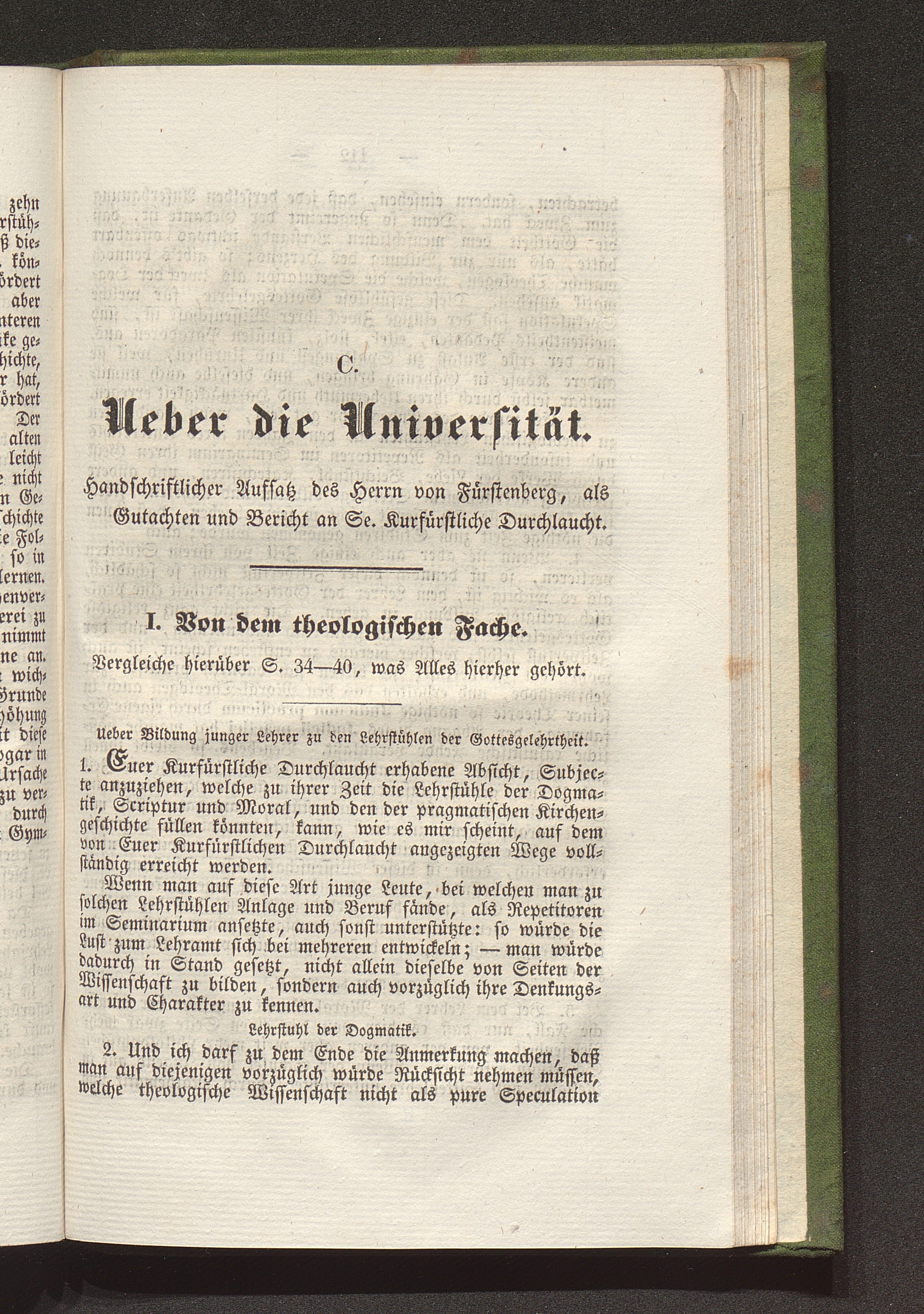 C. Ueber die Universität. Aufsatz des Herrn von Fürstenberg als Gutachten und Bericht[...]