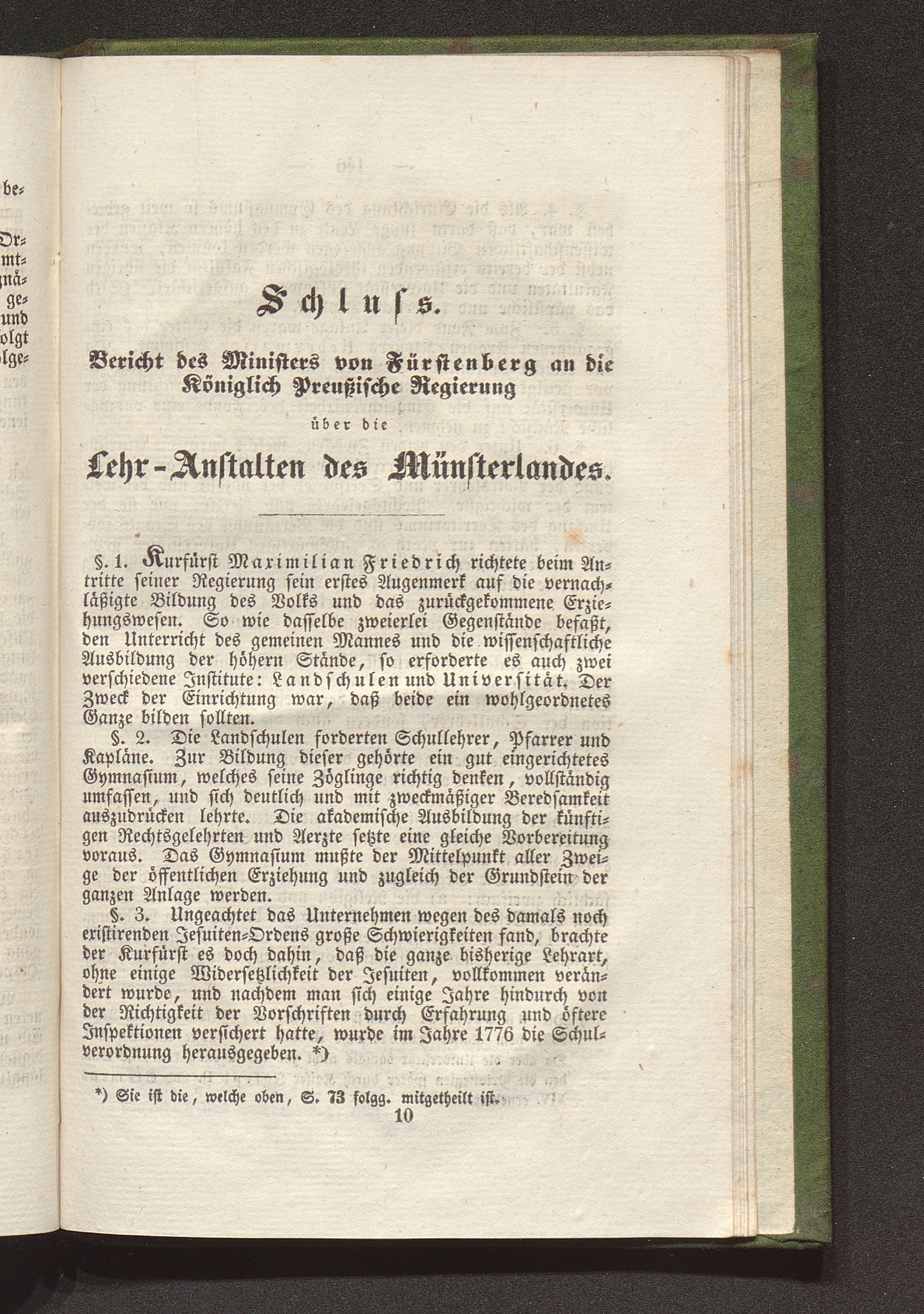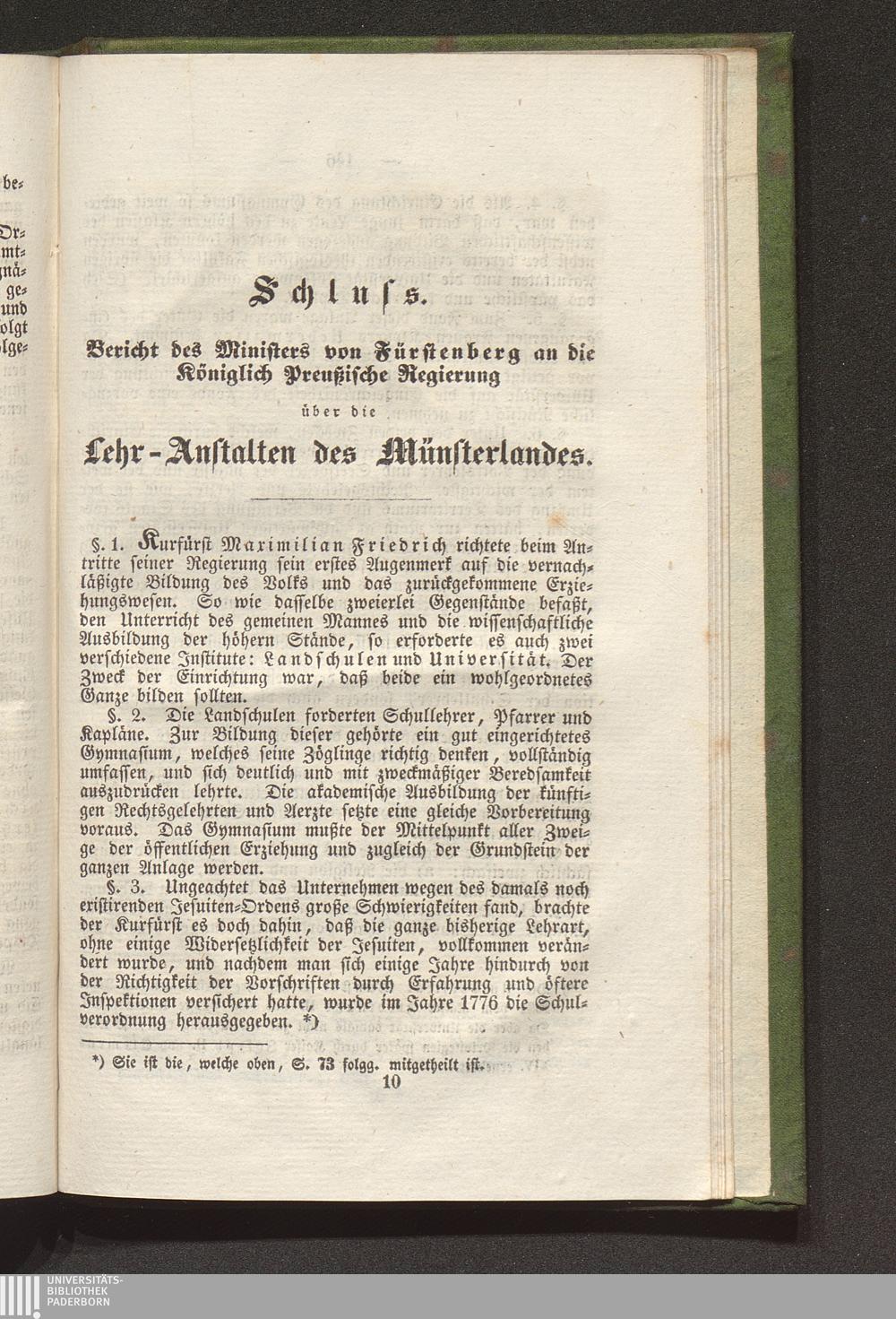Schluß. Bericht des Ministers v. Fürstenberg an die Kön. Preußische Regierung über[...]
