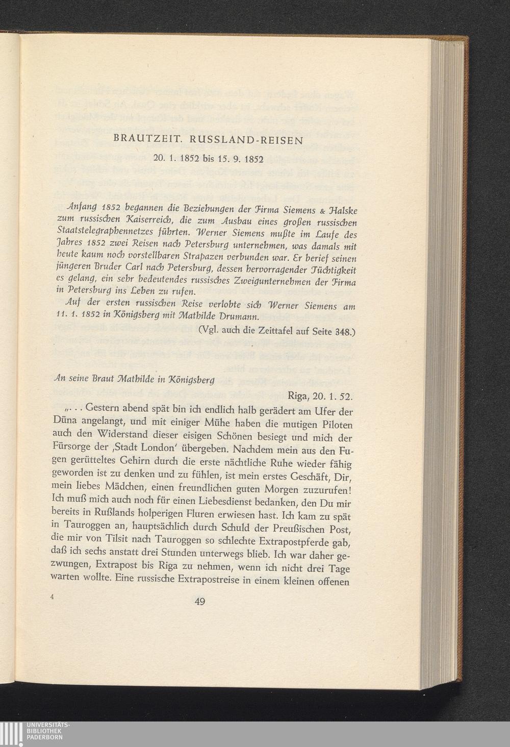 Brautzeit. Rußlandreisen (20.1.1852 - 15.9.1852)