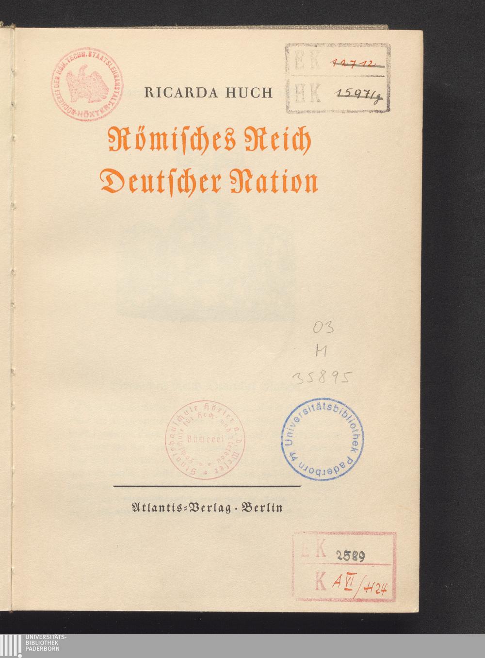 Römisches Reich deutscher Nation / Ricarda Huch