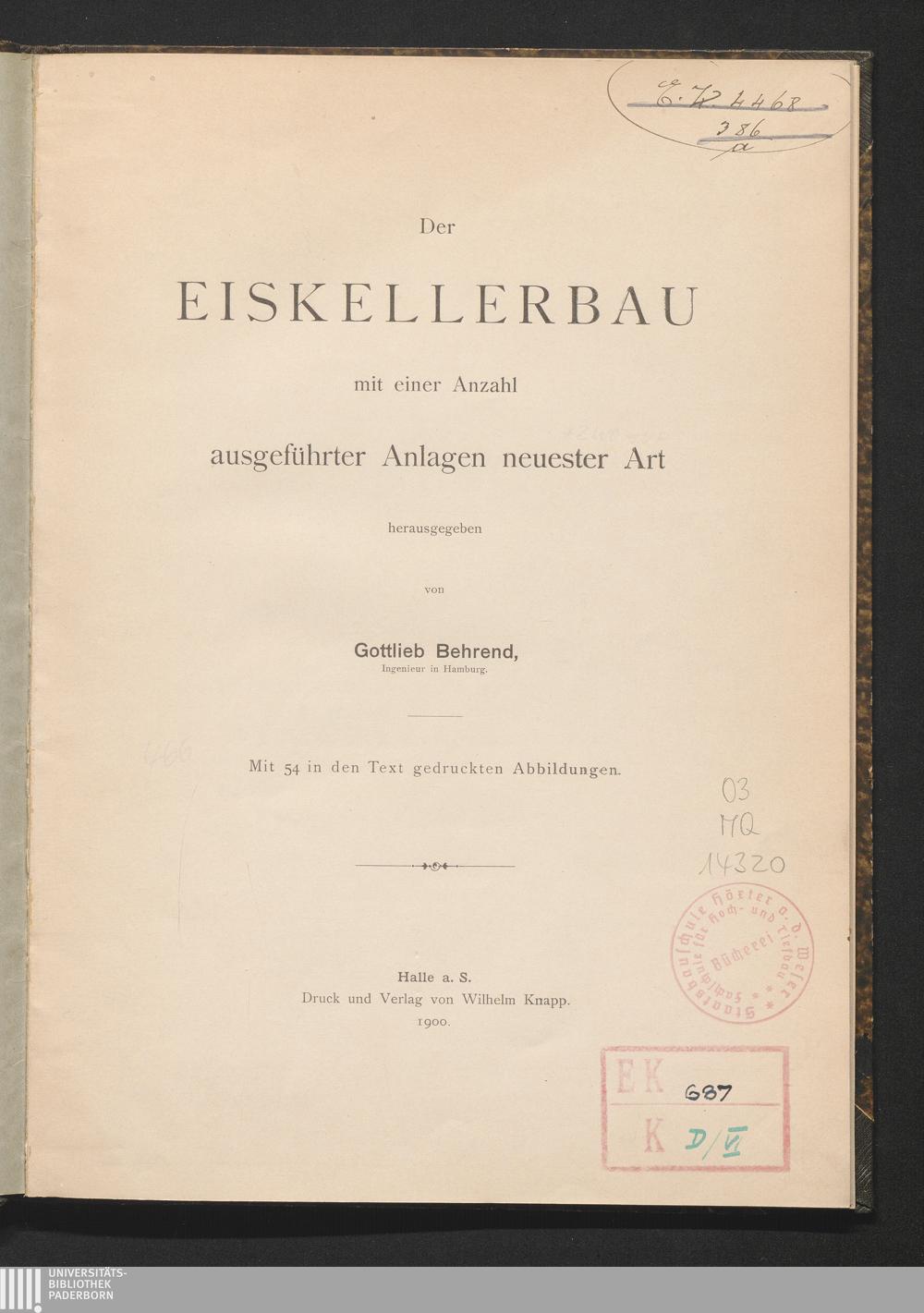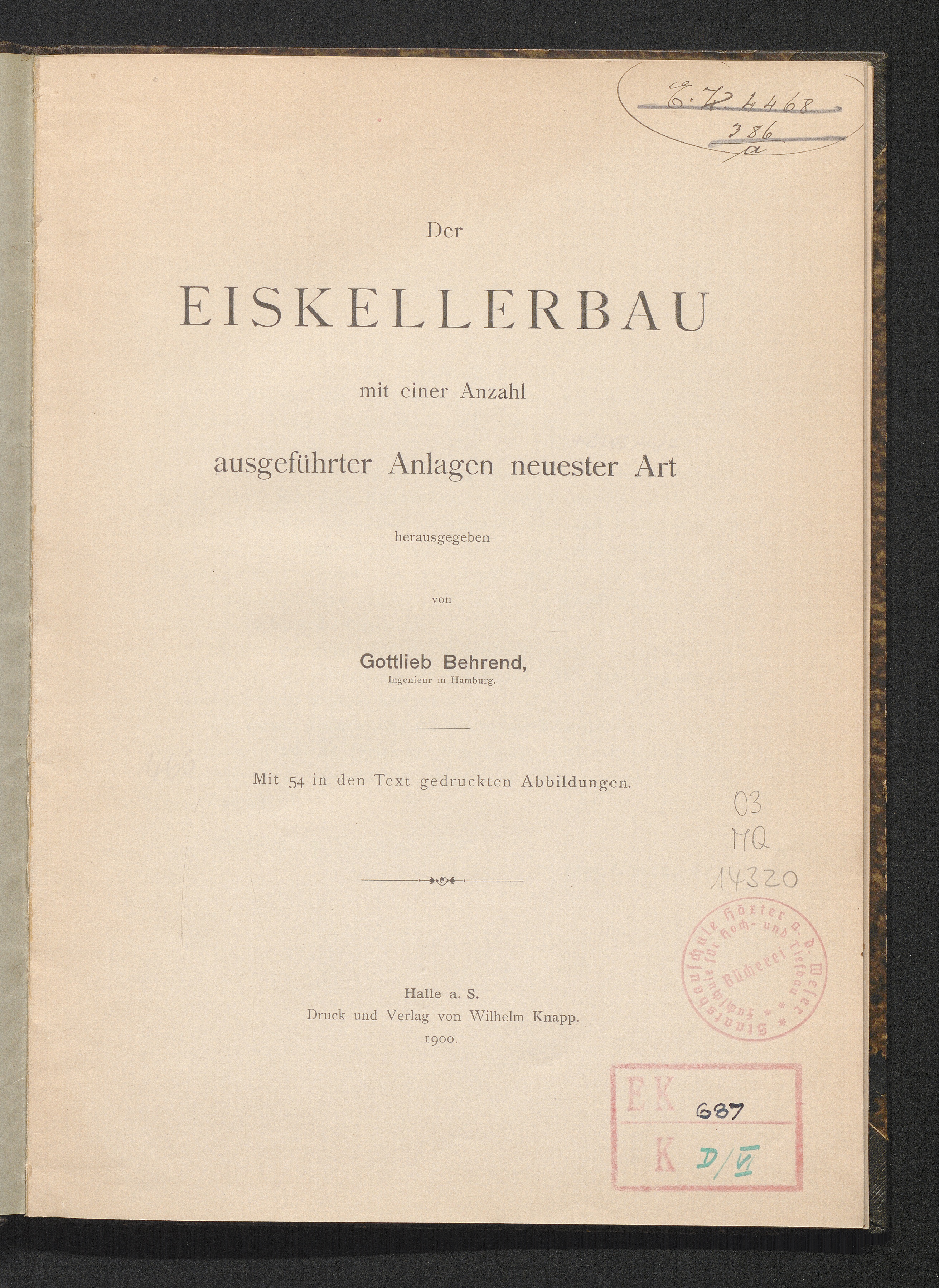 Der Eiskellerbau : mit einer Anzahl ausgeführter Anlagen neuester Art / hrsg. von Gottlieb Behrend