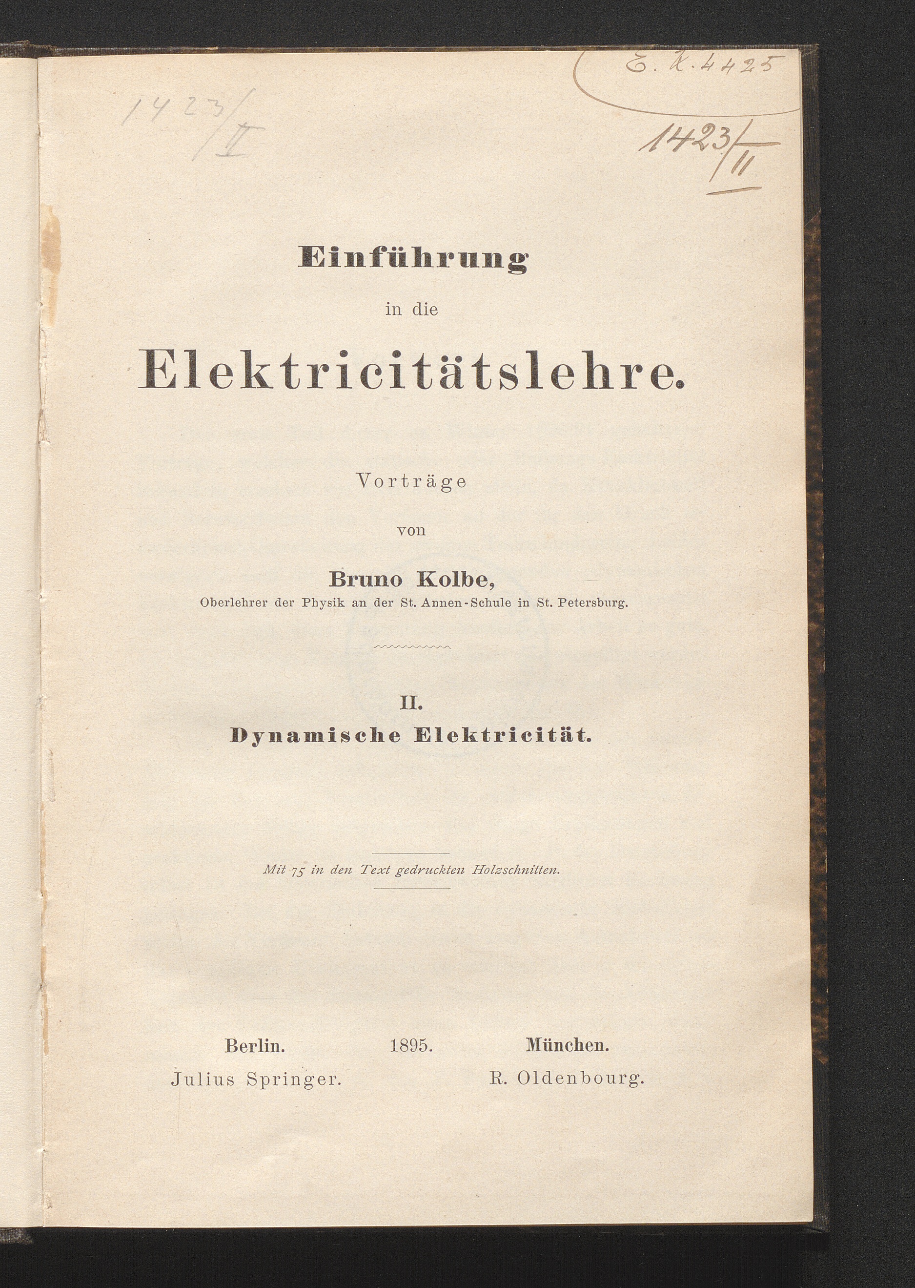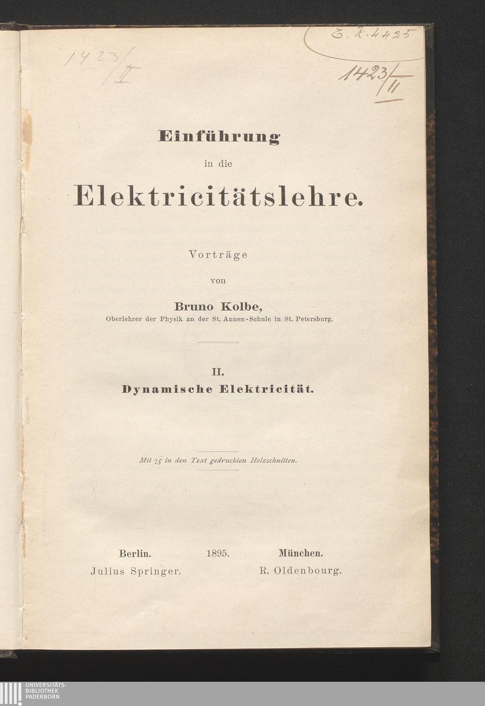 Anhang (Ergänzungen und praktische Winke): 1. Diamagnetismus. - 2. Volta's Gesetz der Spannungsreihe. - 3. Recept für Chromsäurelösung. - 4. Lamettafäden, ihr Ersatz. - 5. Zur Entdeckung der Ablenkung der Magnetnadel durch den galvanischen Strom. - 6. Fleeming's Normaldaniell: Kurzschluss. - 7. Zum Graduieren des Galvanometers. - 8. Zur Erfindung der elektrischen Glühlampe. - 9. Das Demonstrations-Galvanometer als Sinus-Bussole. - 10. Zur Erfindung des magneto-elektrischen Telegraphen. - 11. ...