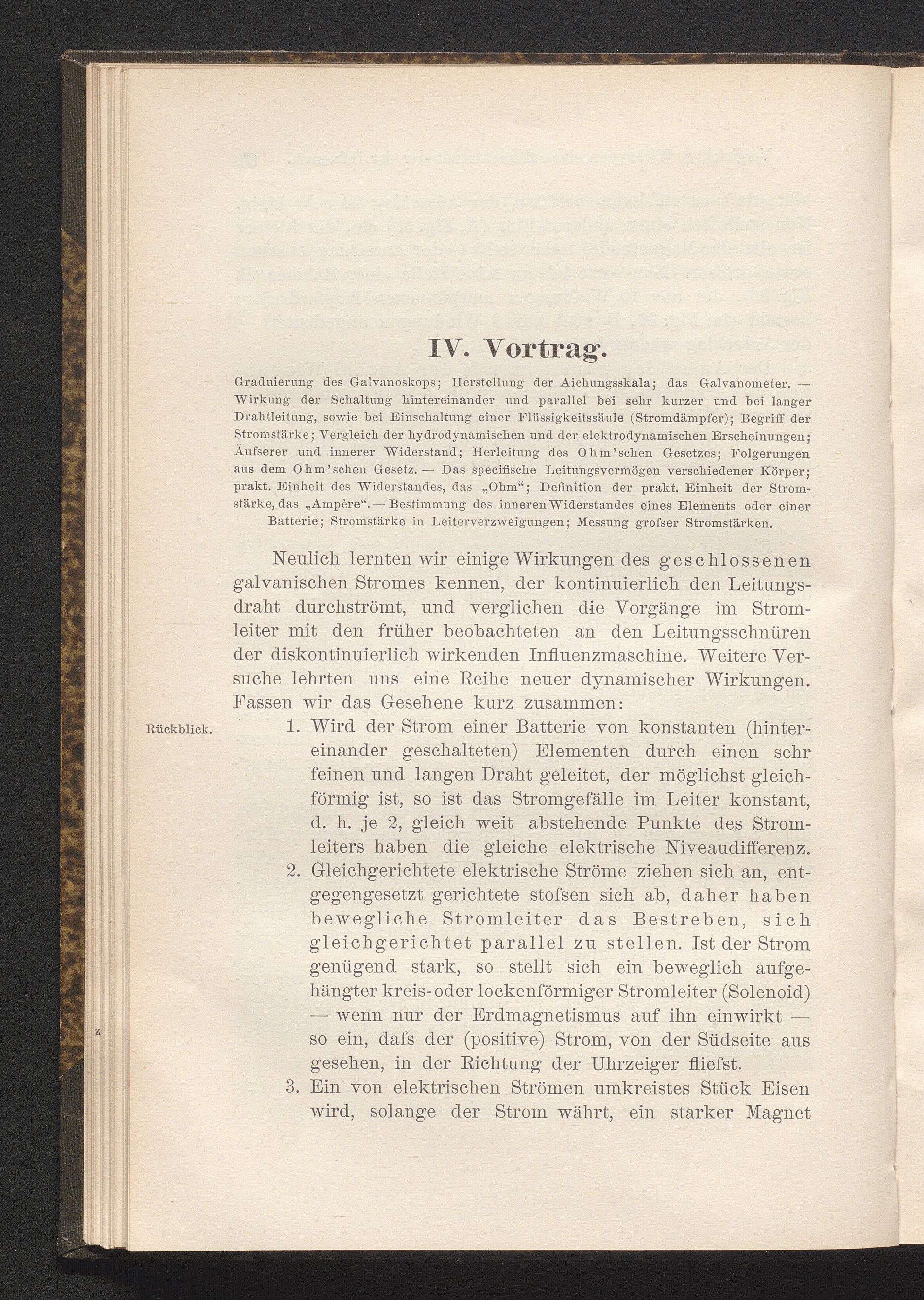IV. Vortrag: Graduierung des Galvanoskops; Herstellung der Aichungsskala; das Galvanometer.[...]