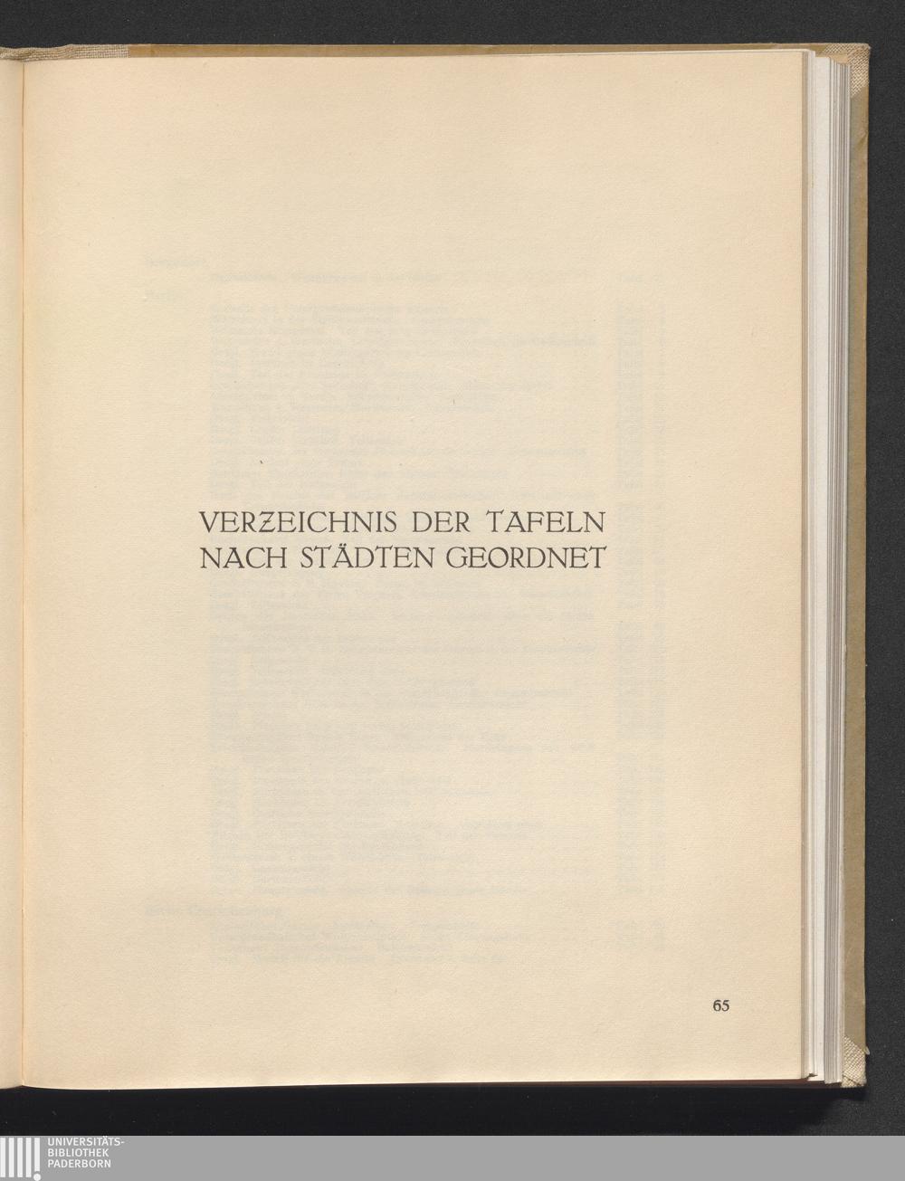 Verzeichnis der Tafeln nach Städten geordnet