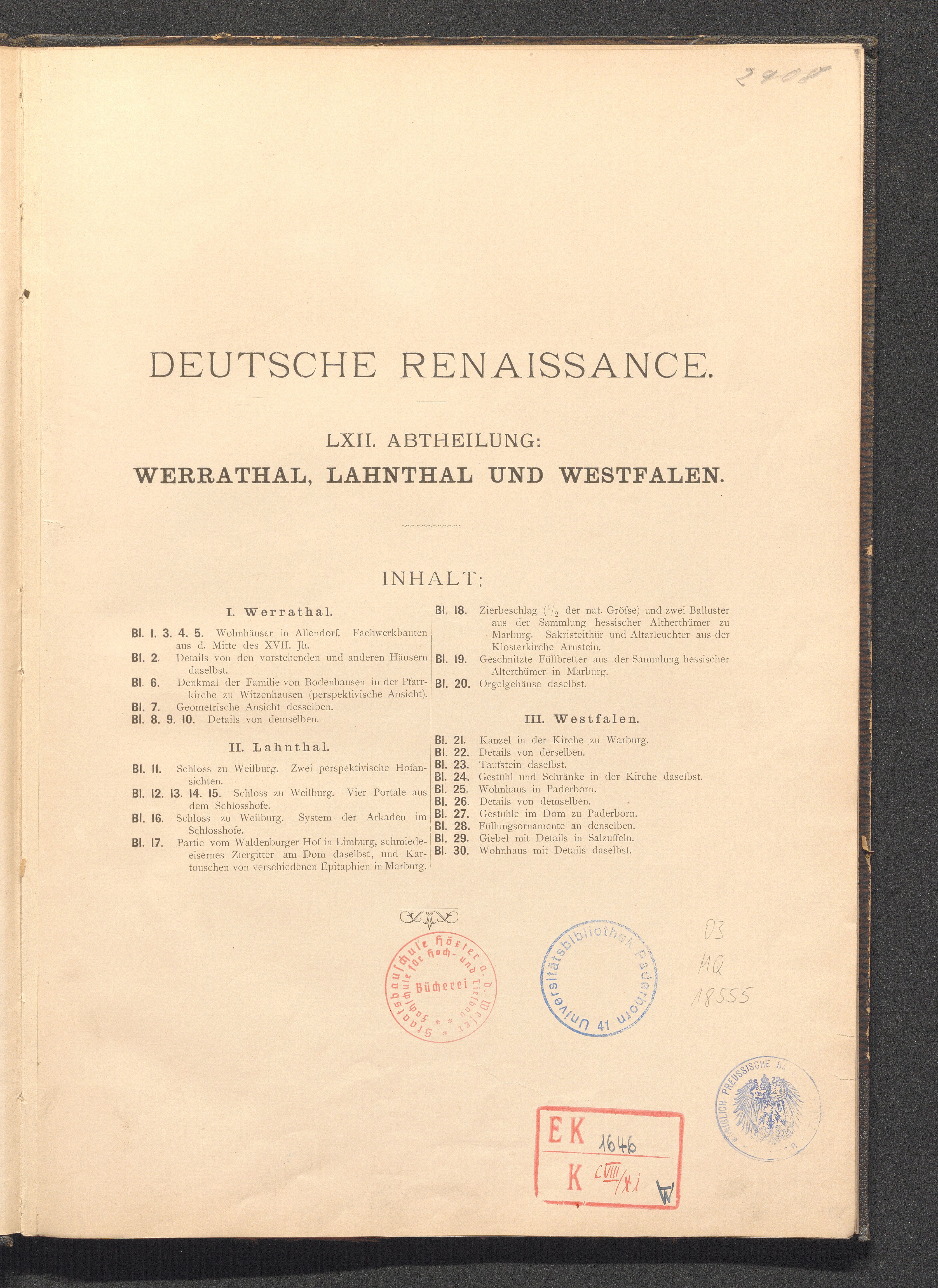 Deutsche Renaissance. LXII. Abtheilung. Werrathal, Lahnthal Und Westfalen.
