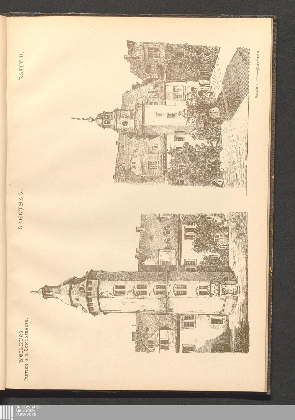 Bl. 11. Schloss zu Weilburg. Zwei perspektivische Hofansichten.