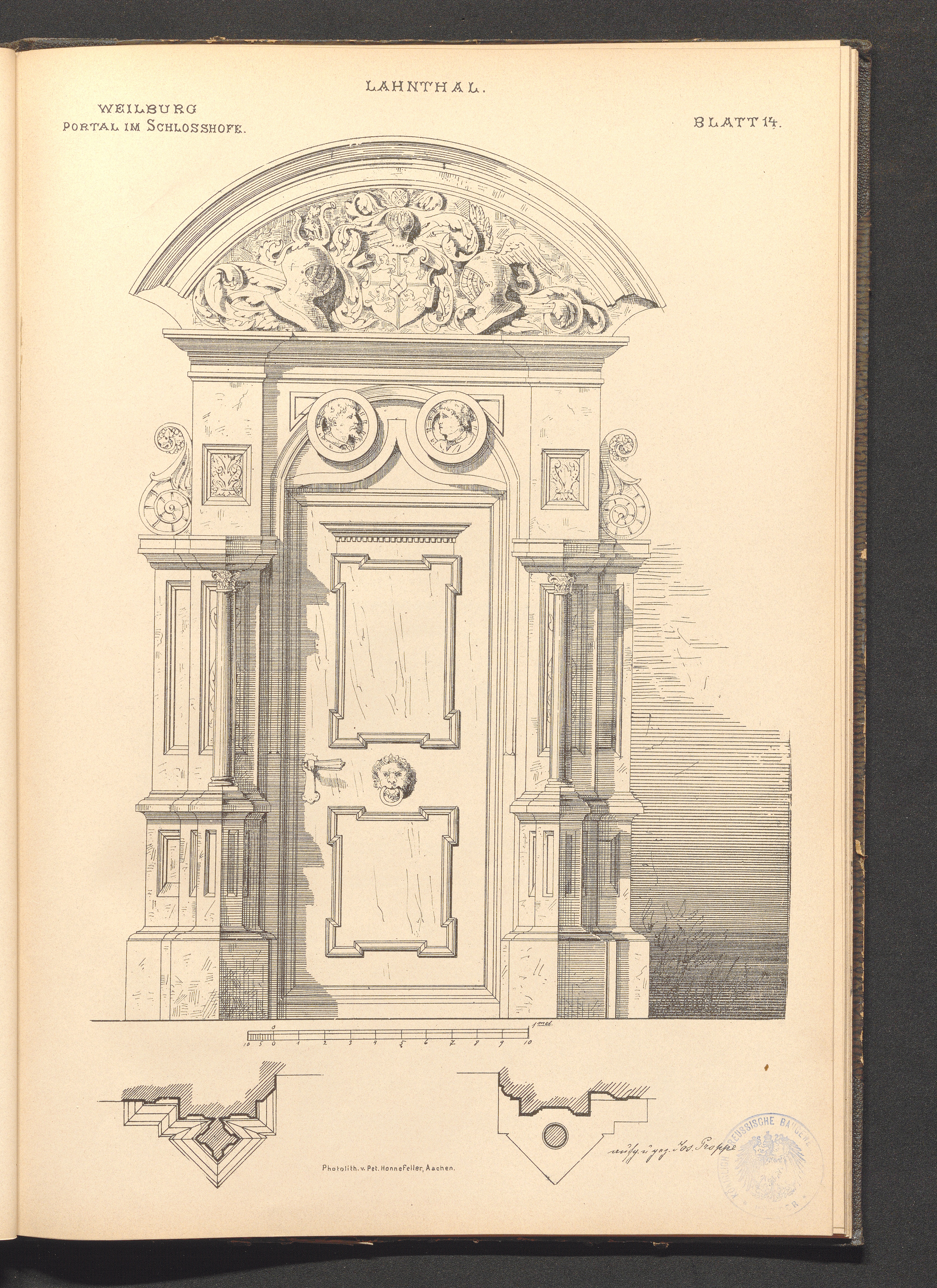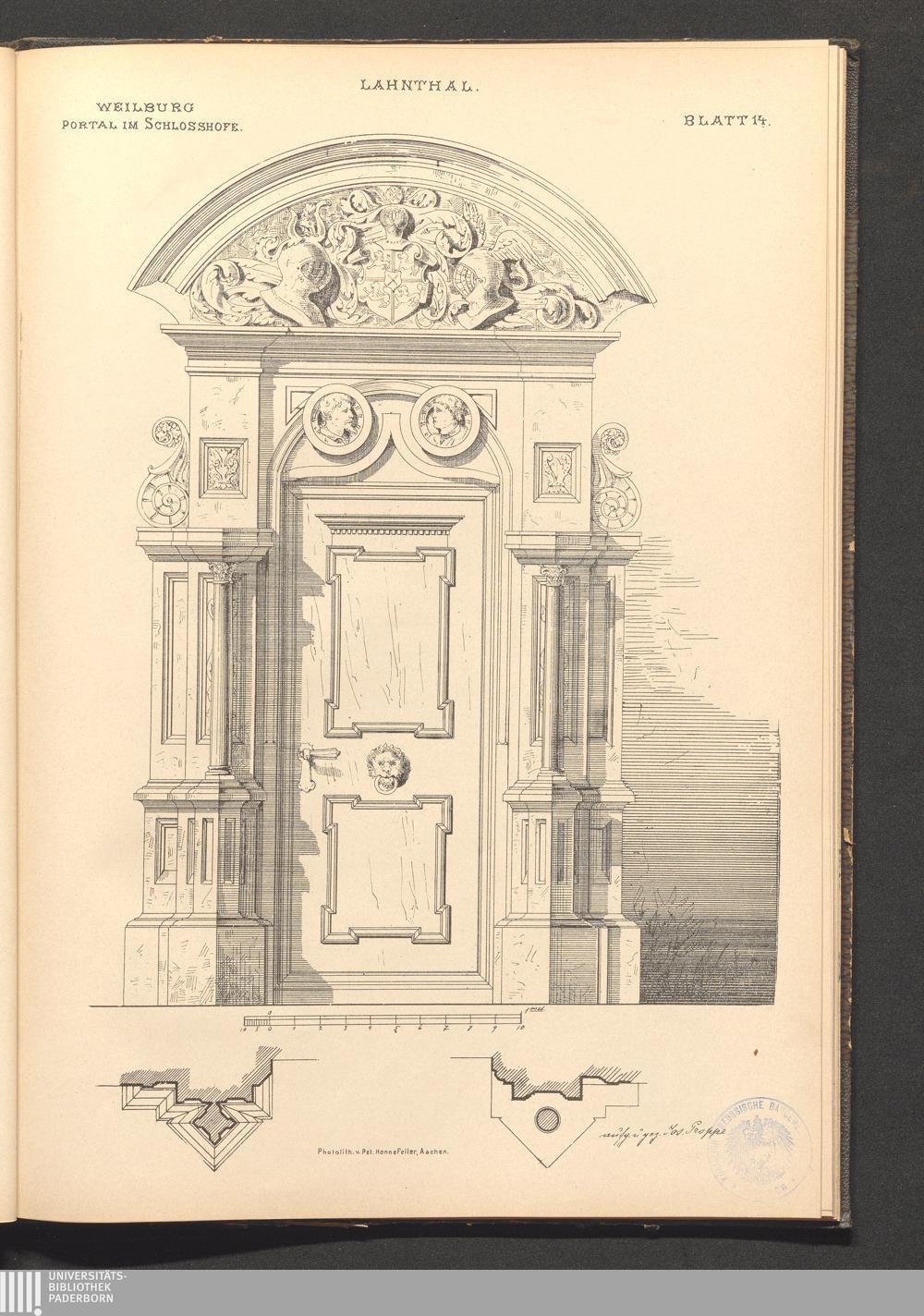 Bl. 14. Schloss zu Weilburg. Vier Portale aus dem Schlosshofe.