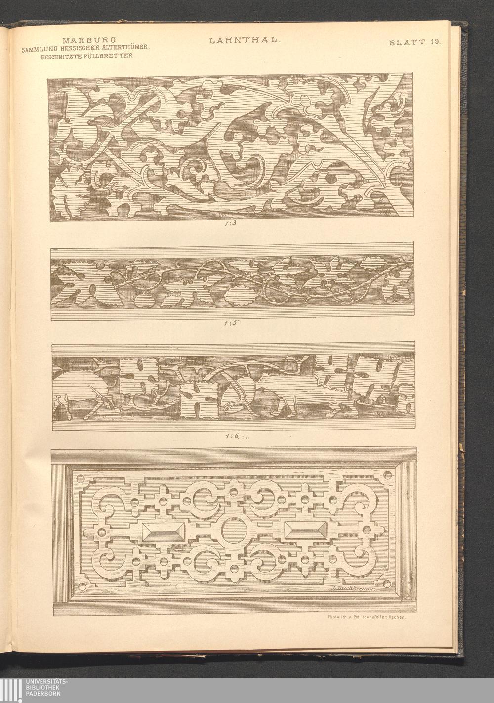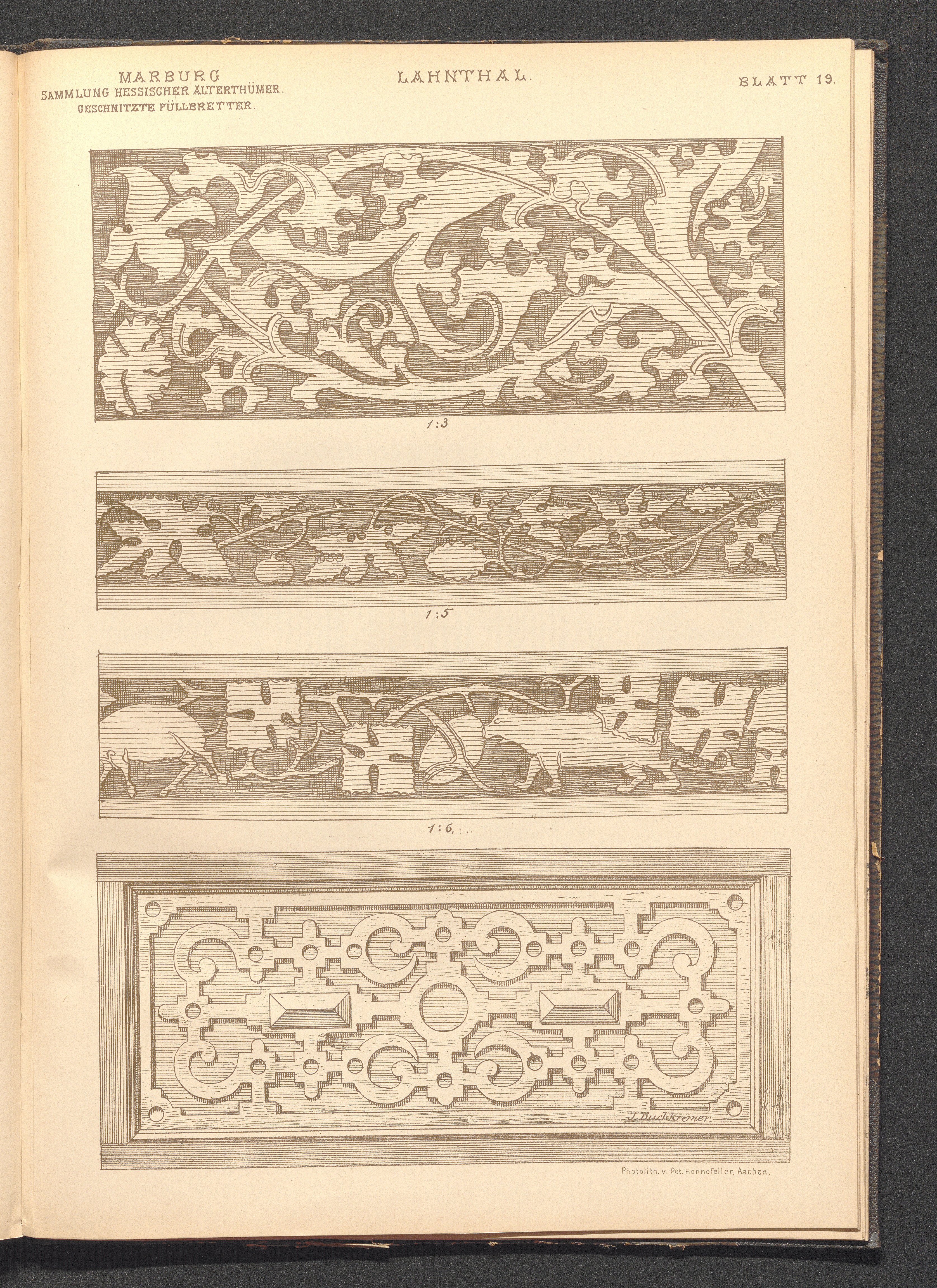 Bl. 19. Geschnitzte Füllbretter aus der Sammlung hessischer Altherthümer in Marb[...]