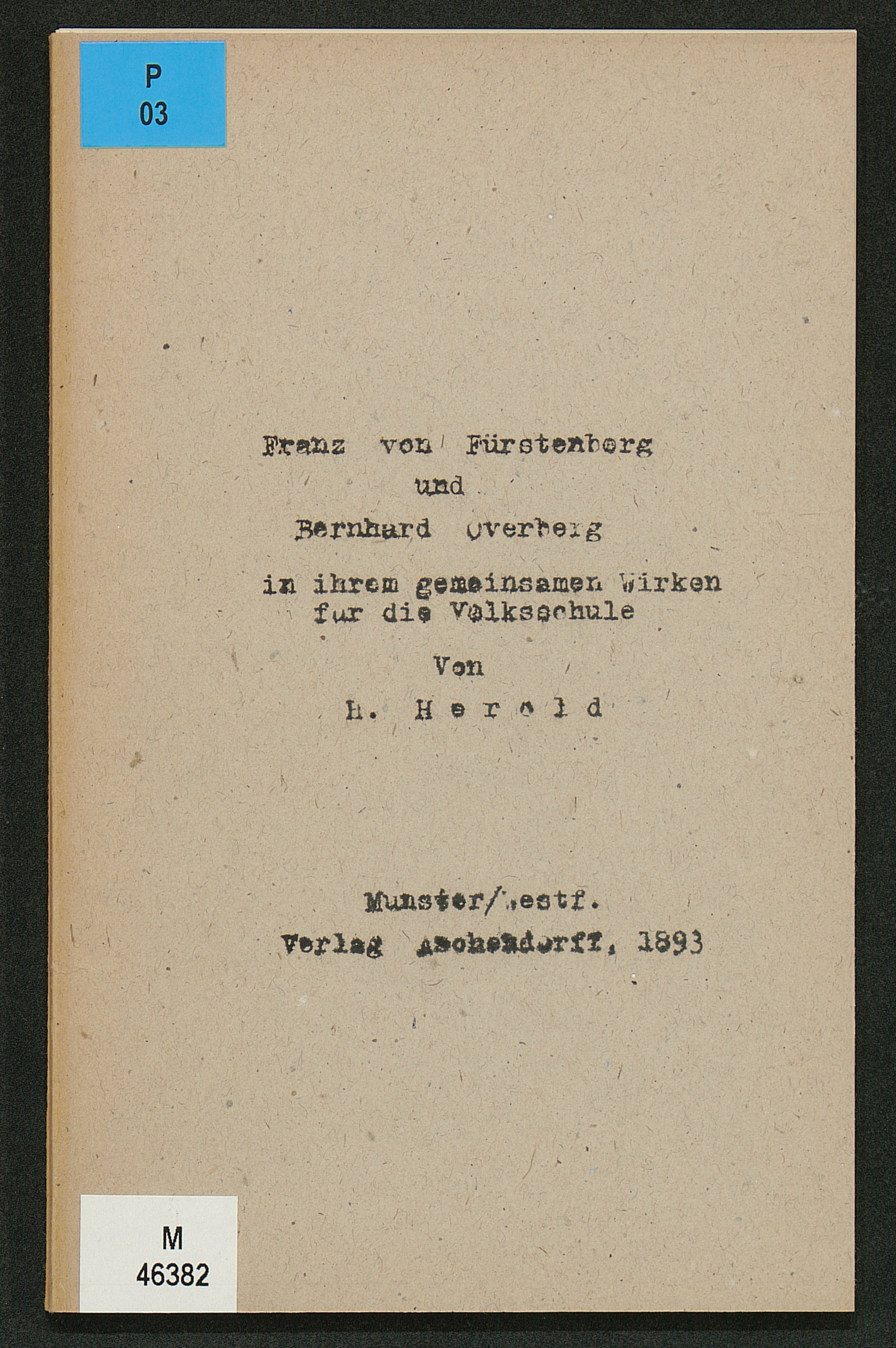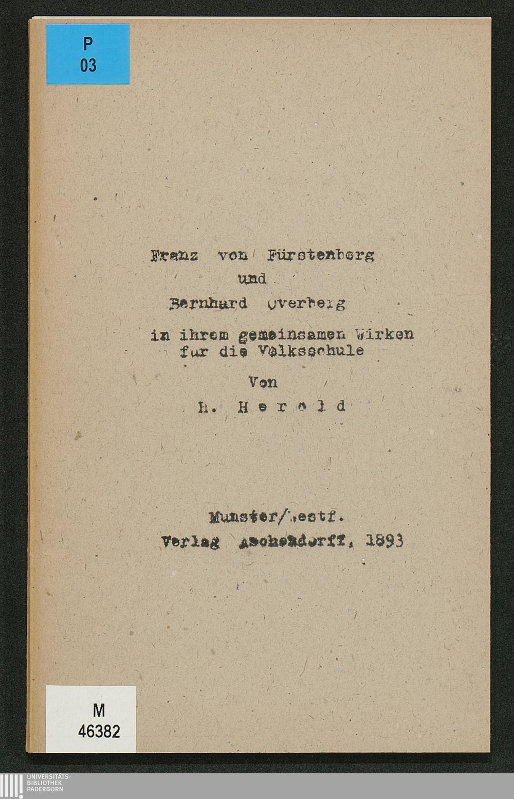 Franz von Fürstenberg und Bernhard Overberg in ihrem gemeinsamen Wirken für die Volksschule / von H. Herold