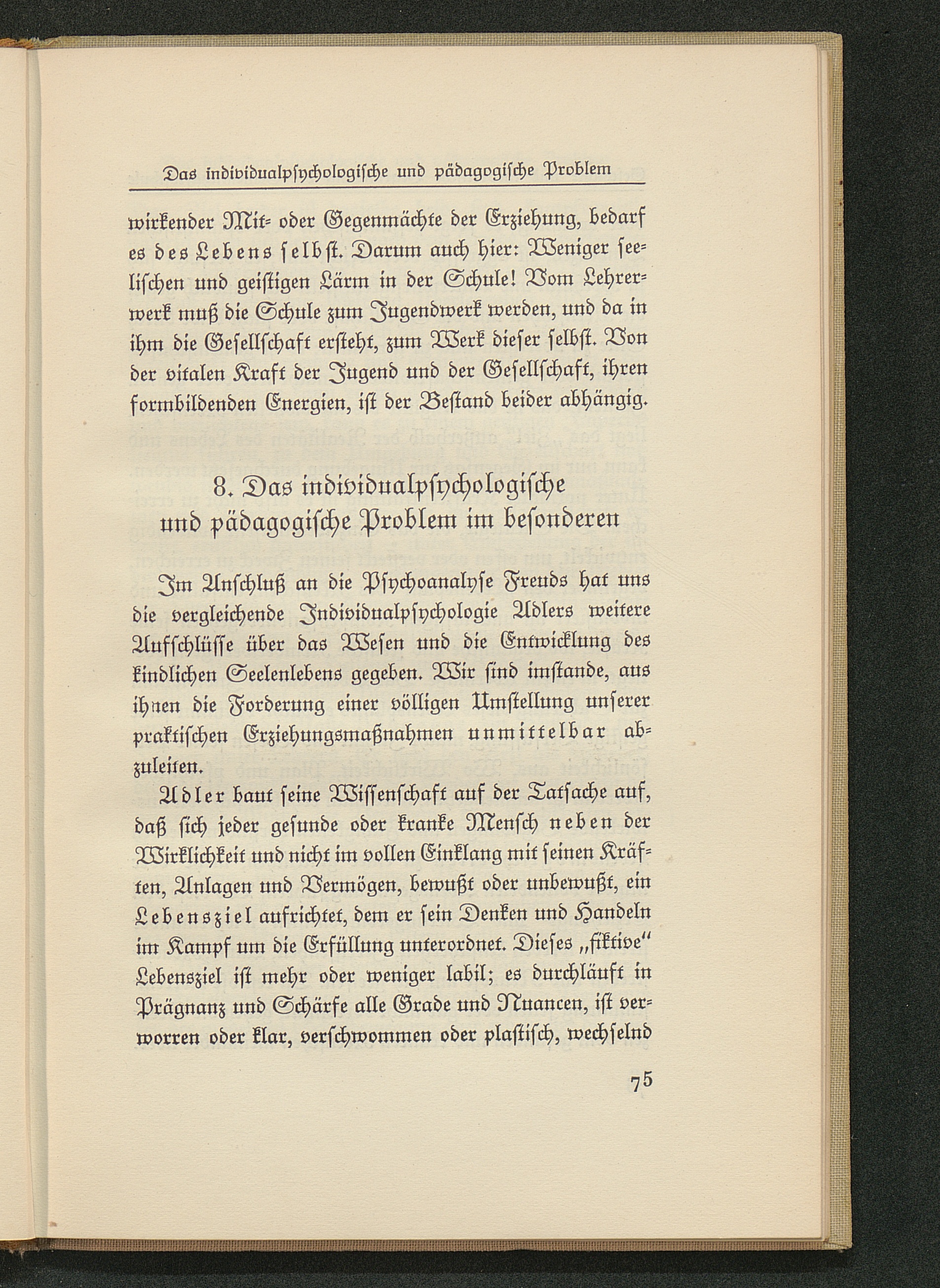 8. Das individualpsychologische und pädagogische Problem im besonderen