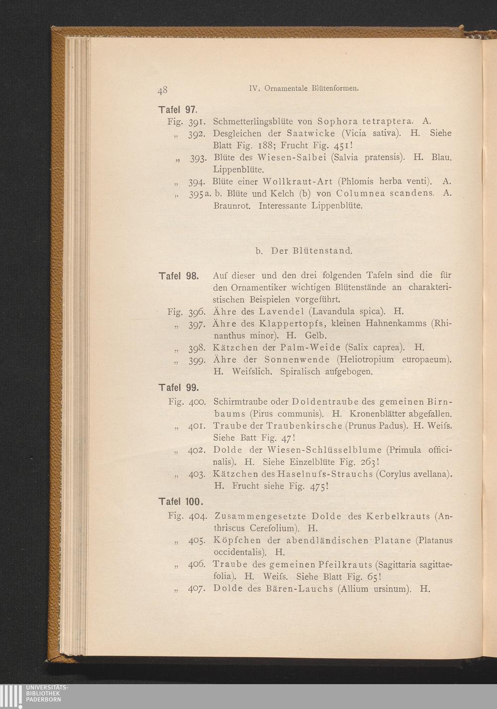 b. Der Blütenstand. (Taf. 98 - 101)