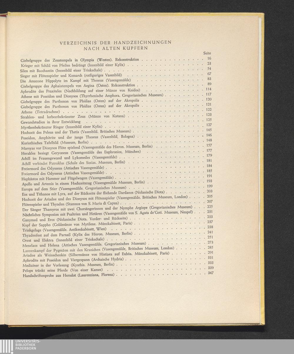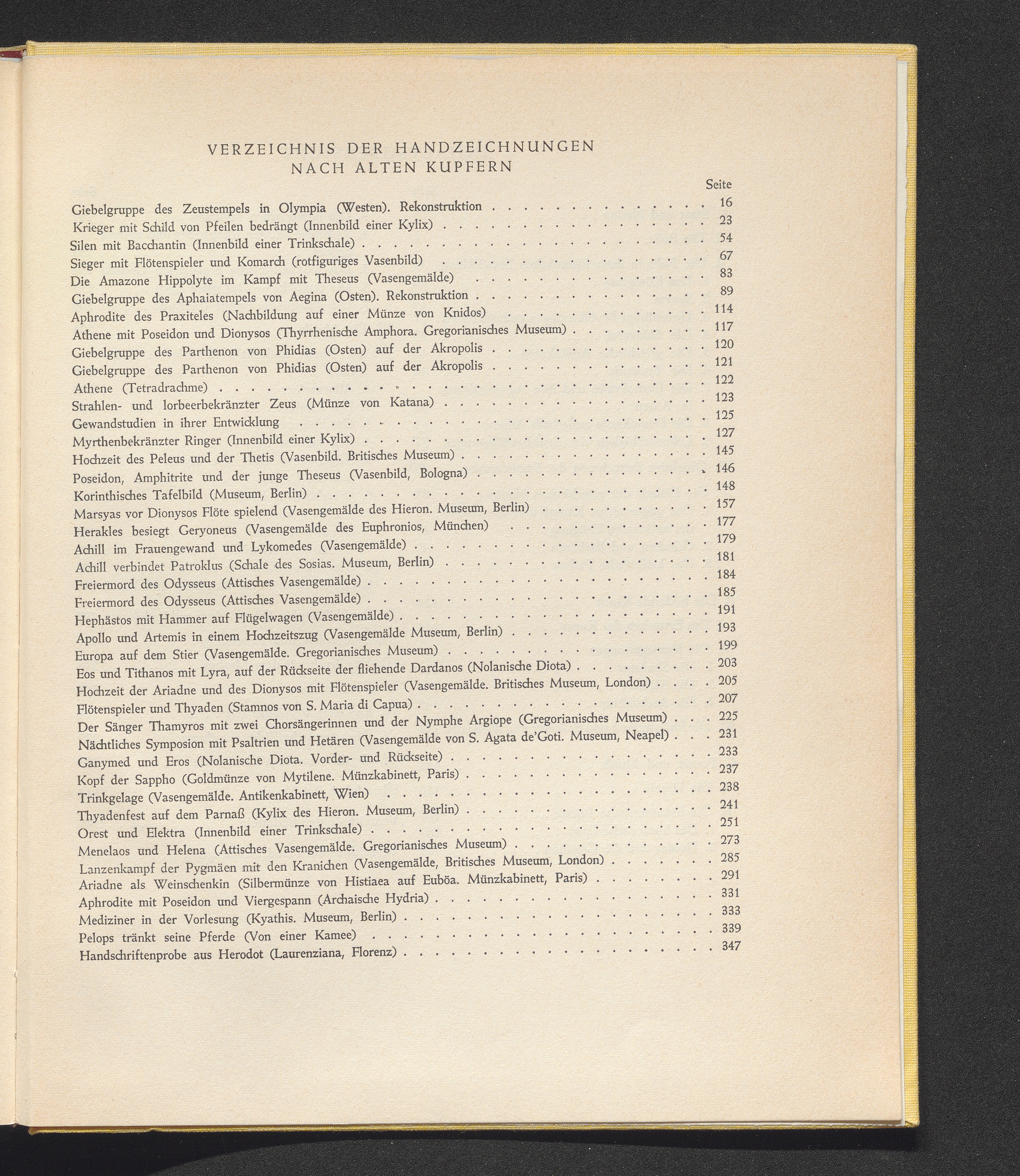 Verzeichnis der Handzeichnungen