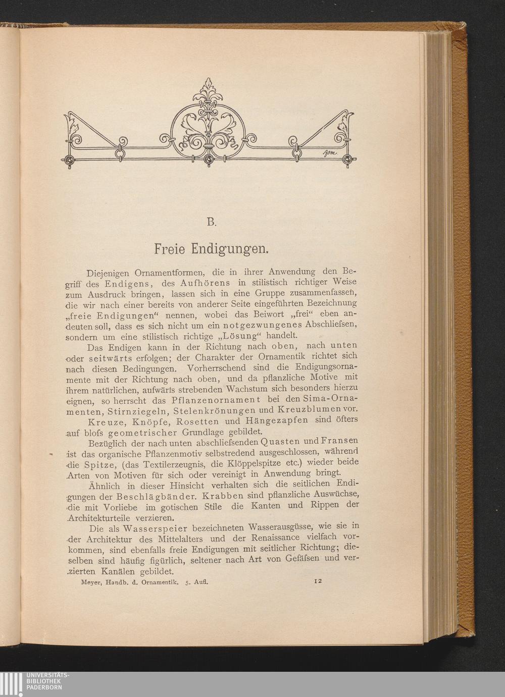 Systematisch geordnetes Handbuch der Ornamentik : zum Gebrauche für Musterzeichner, Architekten, Schulen und Gewerbetreibende sowie zum Studium im allgemeinen / hrsg. von Franz Sales Meyer. Gr. Badische Kunstgewerbeschule in Karlsruhe