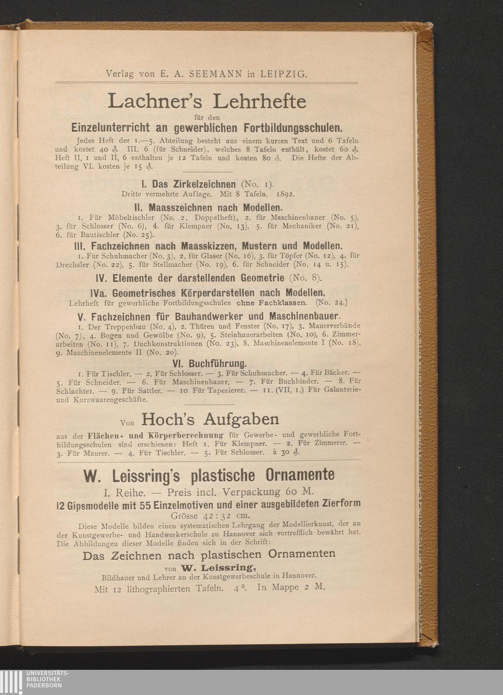 Systematisch geordnetes Handbuch der Ornamentik : zum Gebrauche für Musterzeichner, Architekten, Schulen und Gewerbetreibende sowie zum Studium im allgemeinen / hrsg. von Franz Sales Meyer. Gr. Badische Kunstgewerbeschule in Karlsruhe