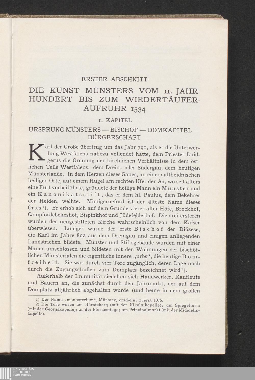 1. Kapitel. Ursprung Münsters, Bischof, Domkapitel, Bürgerschaft