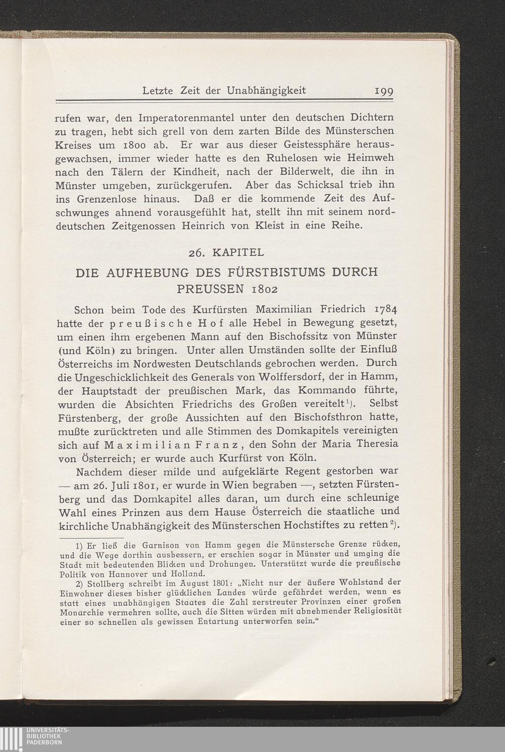 26. Kapitel. Die Aufhebung des Fürstbistums durch Preußen 1802